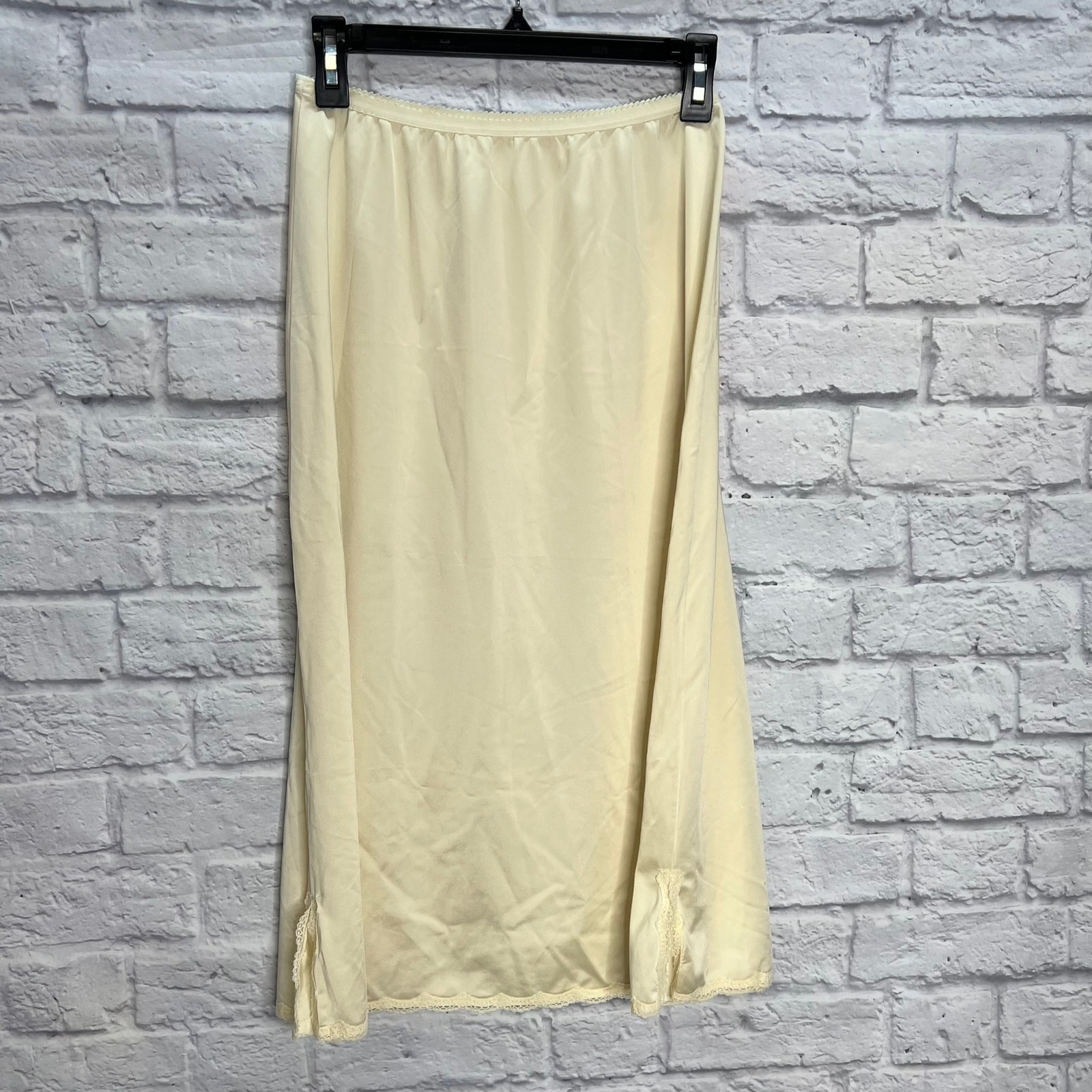 Vintage Shadowline Half Slip Pillow Tab Ivory Size M Lace Trim Side Slits