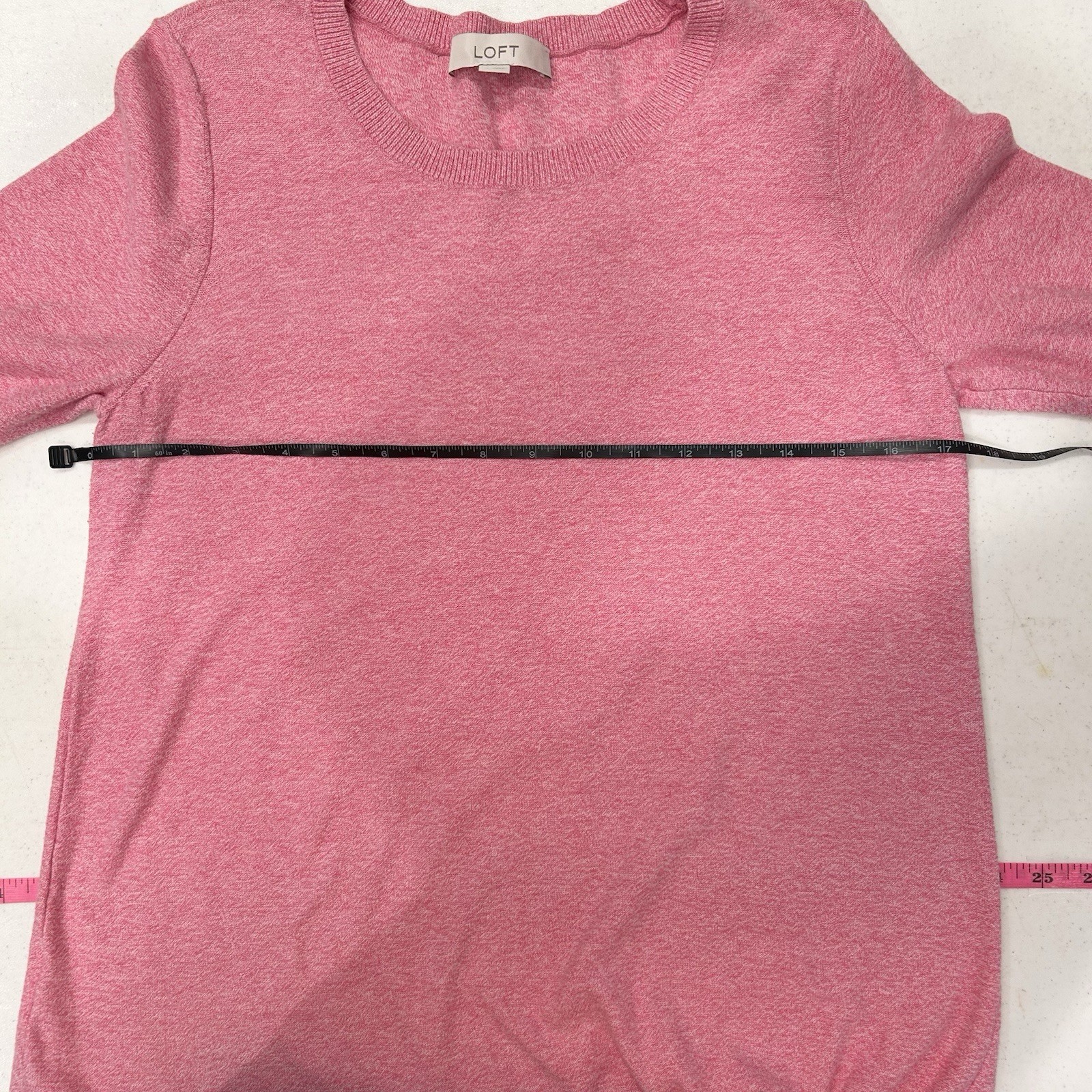 Loft Women s 3/4 Sleeve Rose Pink Tie Front Crew Neck Sweater Size MD Valentines