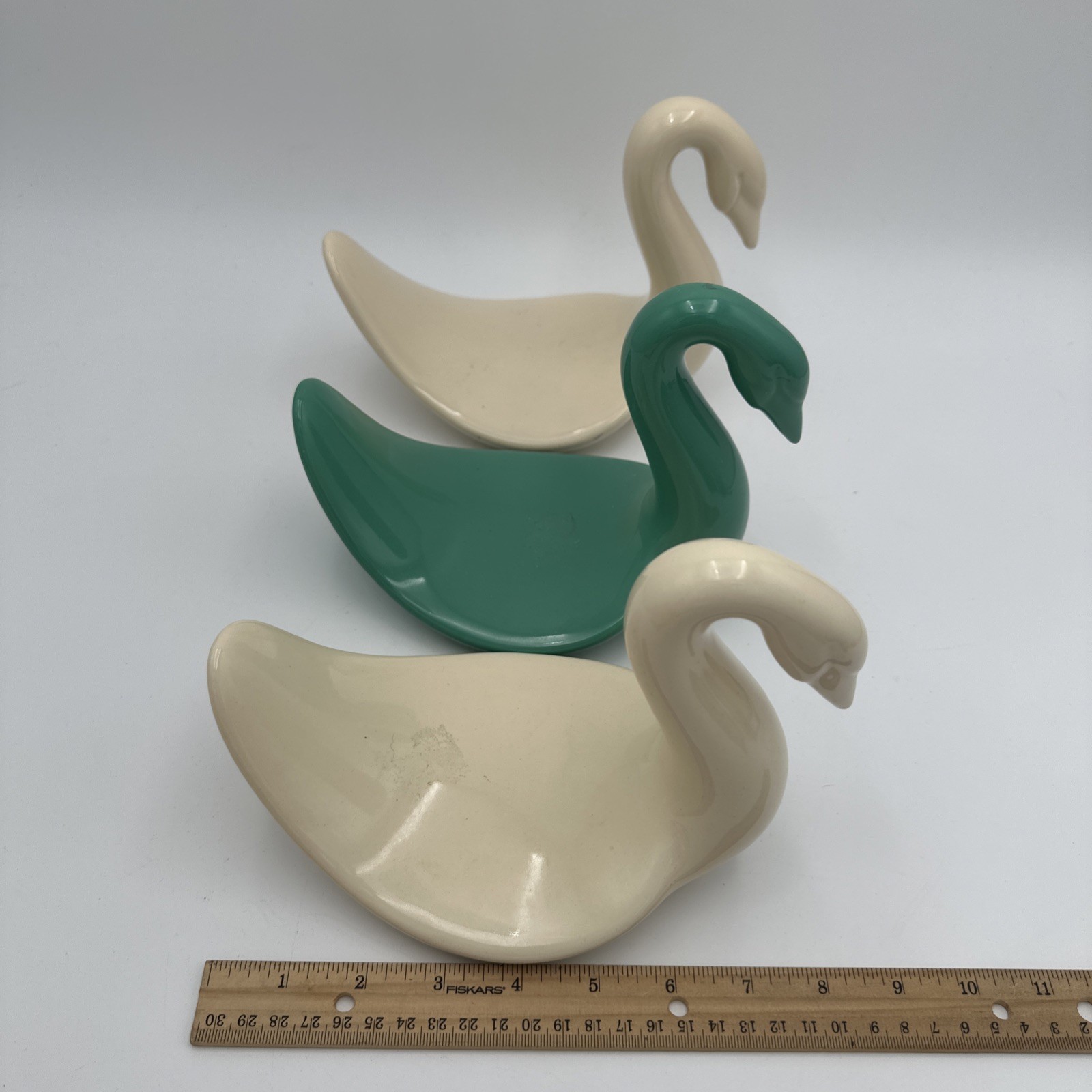 Set Of 3 Vintage Ceramic Swan Towel Holders