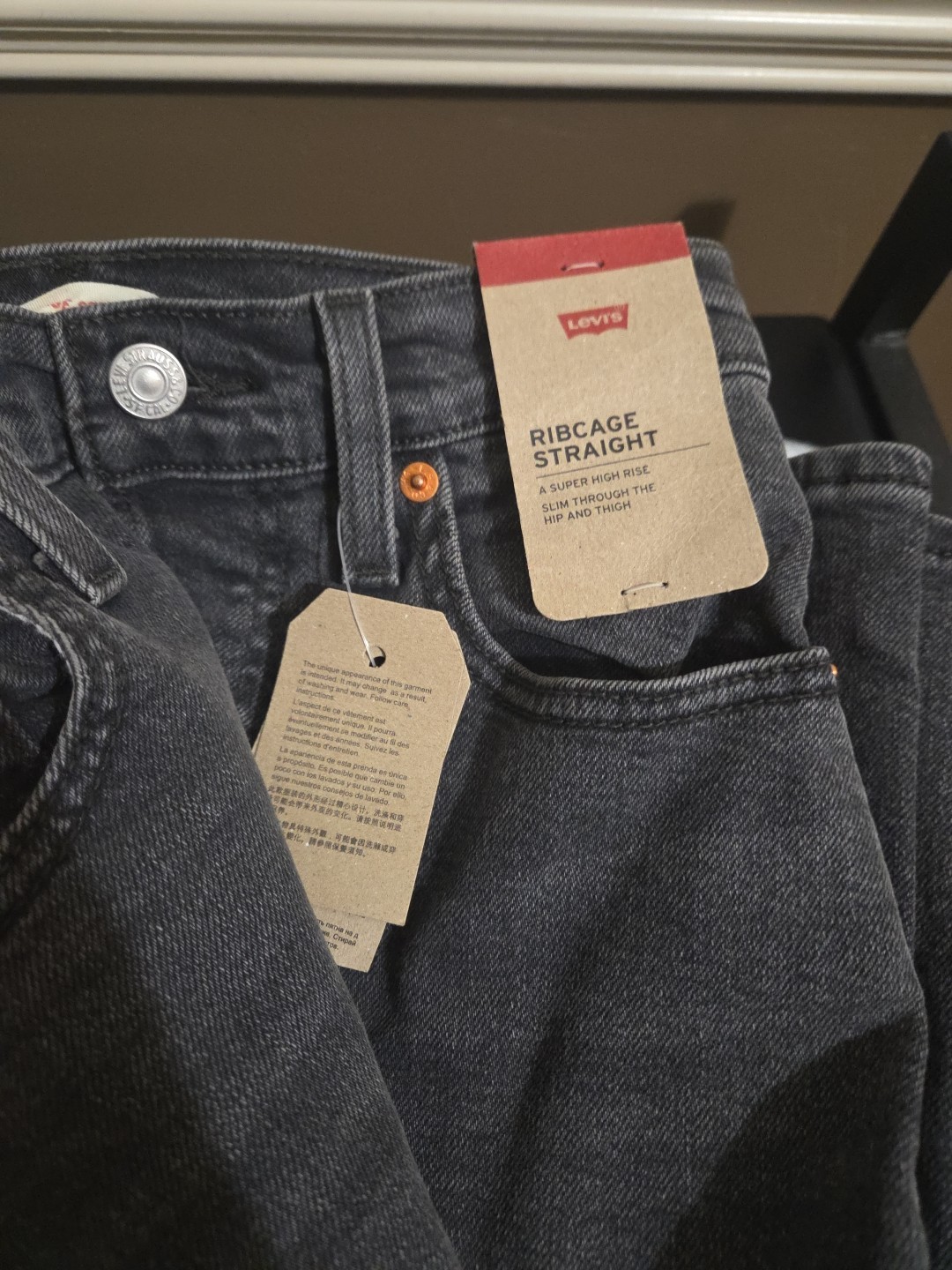 как выглядит Levis Womens Ribcage Straight Jeans Full Length 26 x 32 WELL WORN BLACK NWT фото