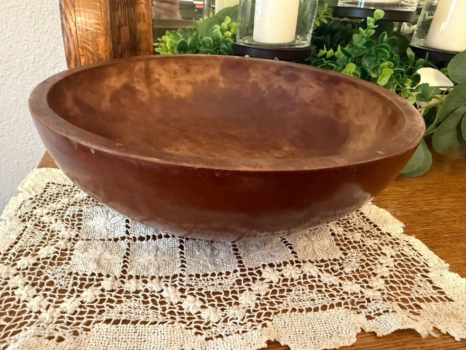 Vintage 1960s Haitian Hand Carved Wood Bowl 11.5 Rustic Primitive Decor BOHO