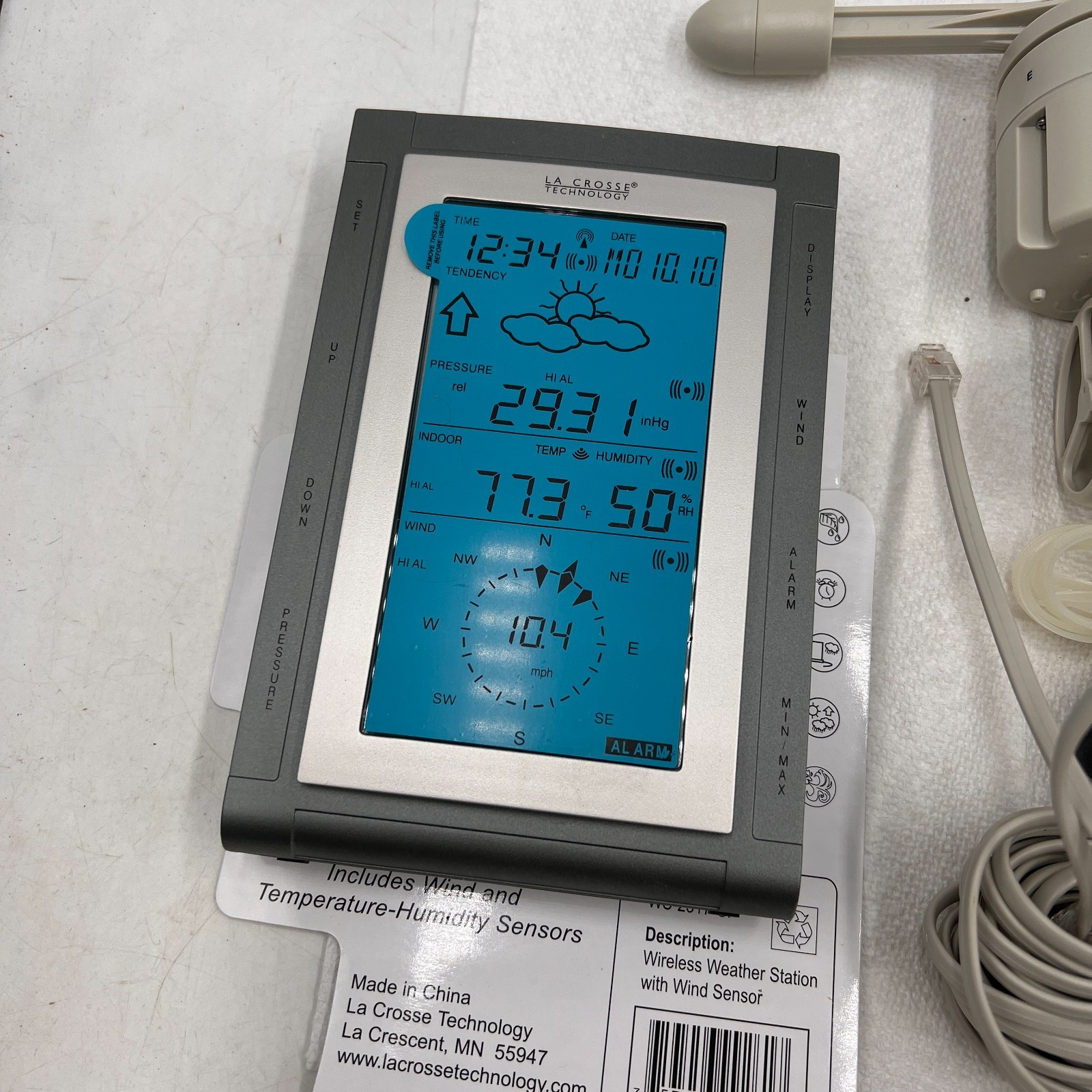 Displayed Measurements: Barometer, Temperature, Wind Direction, Wind Speed
