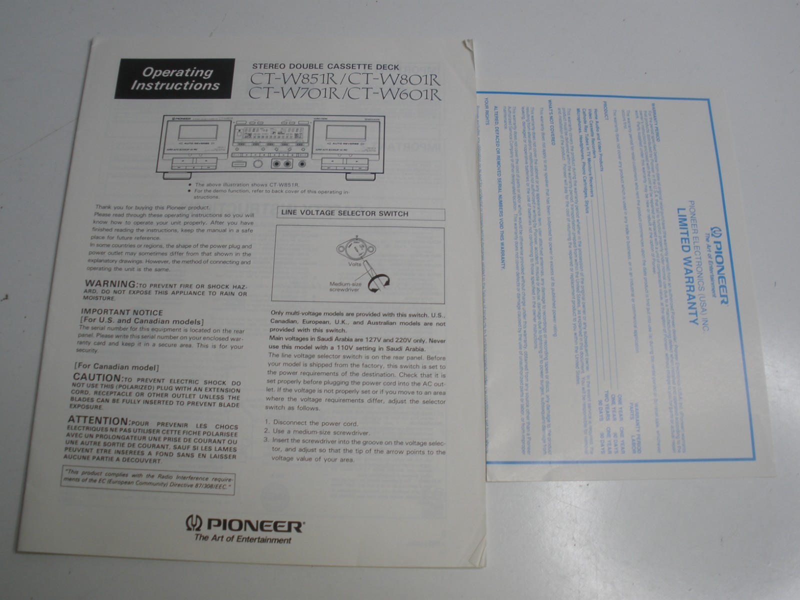 Pioneer CT-W801R Stereo Double Cassette Deck Recorder Parts/Repair