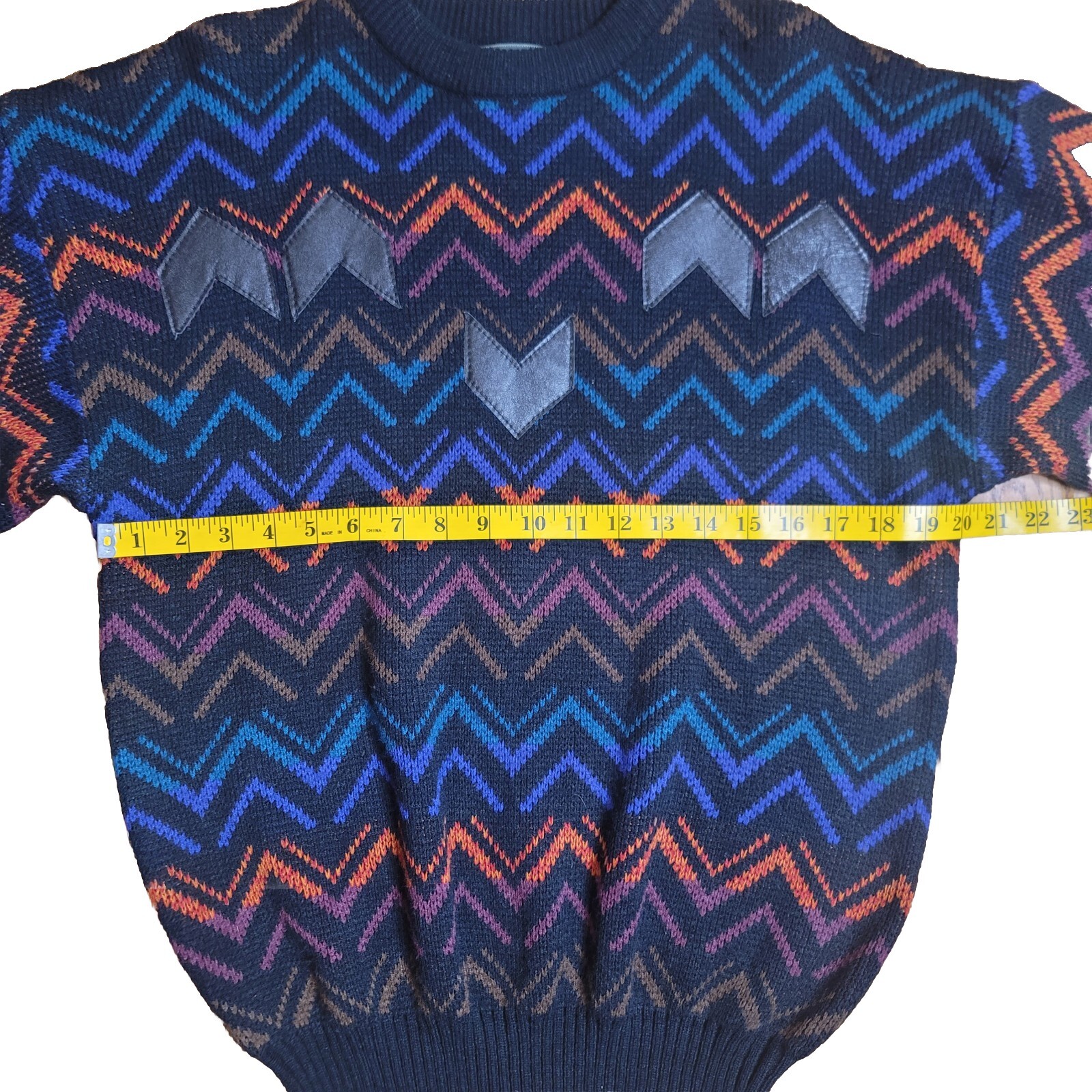 VTG WEEDS Men's L Multicolor Zig-Zag Pattern Knit Eclectic Grandpa Sweater
