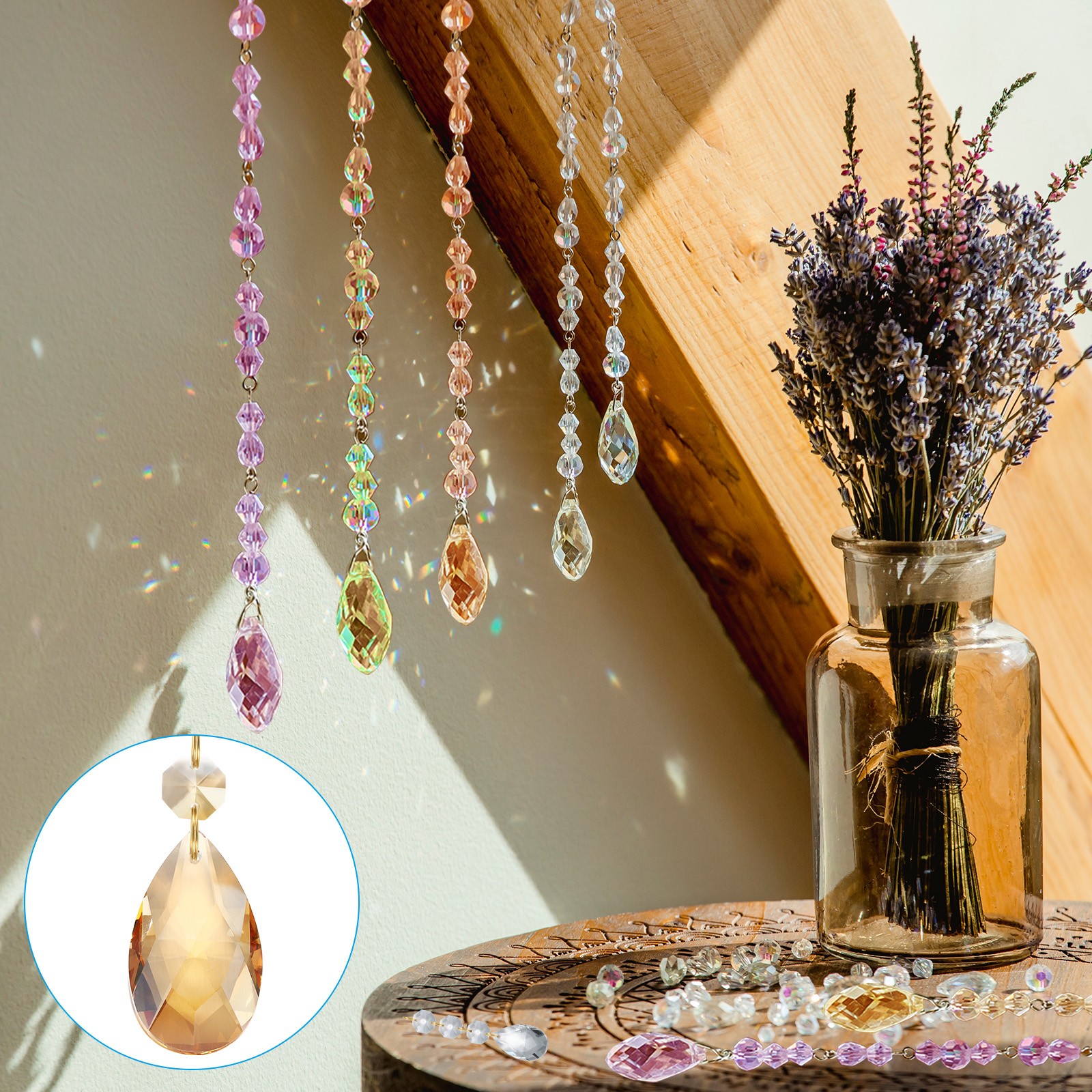 как выглядит 10 Pcs Gold Tone Teardrop Crystal Chandelier DECORATION Prisms Electroplating фото