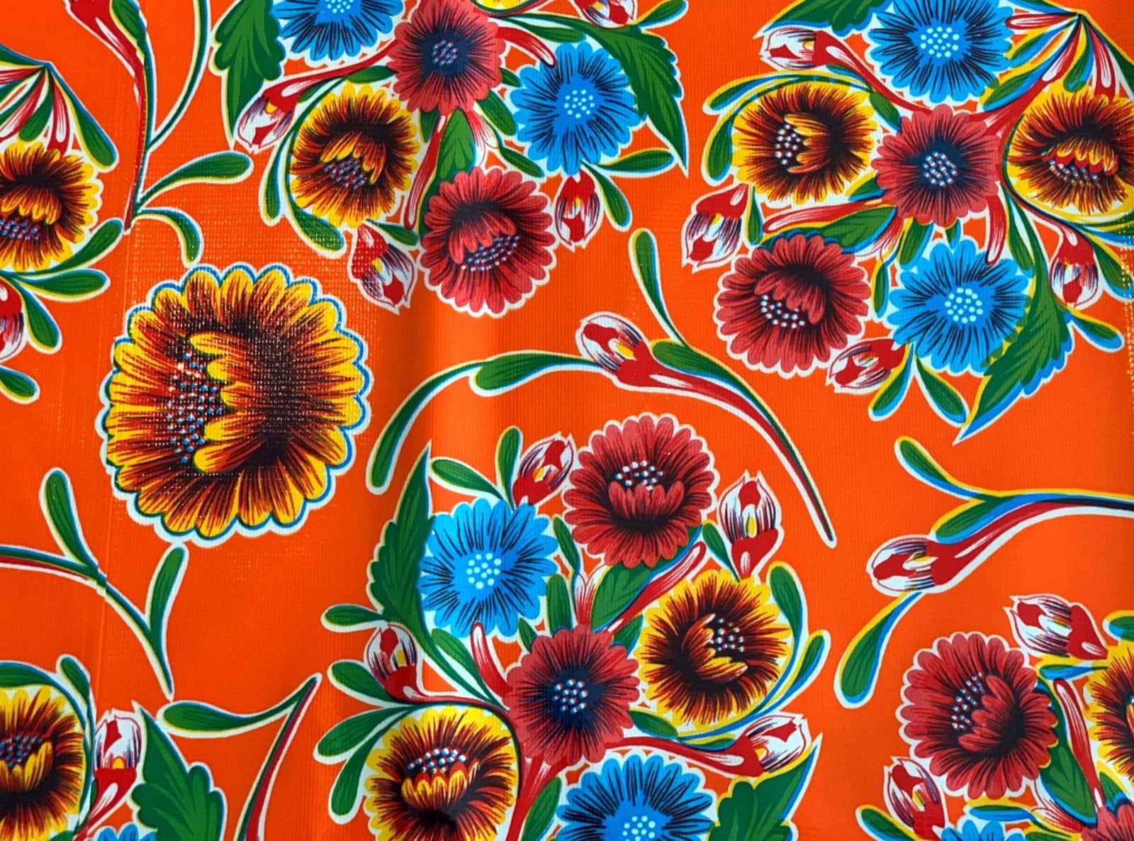 Alux Sweet Flower Oilcloth Tablecloth - Orange - Plastic Vinyl PVC - Mantel d...