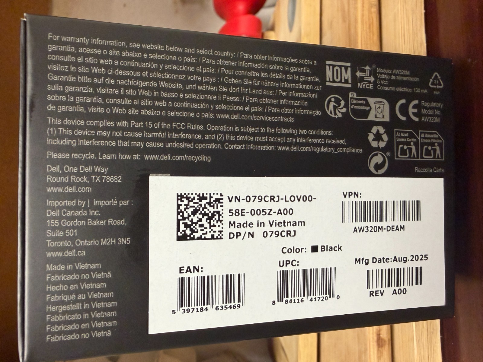 Alienware Wired Gaming Mouse - AW320M, 19k DPI, 60m clicks lifespan , wired