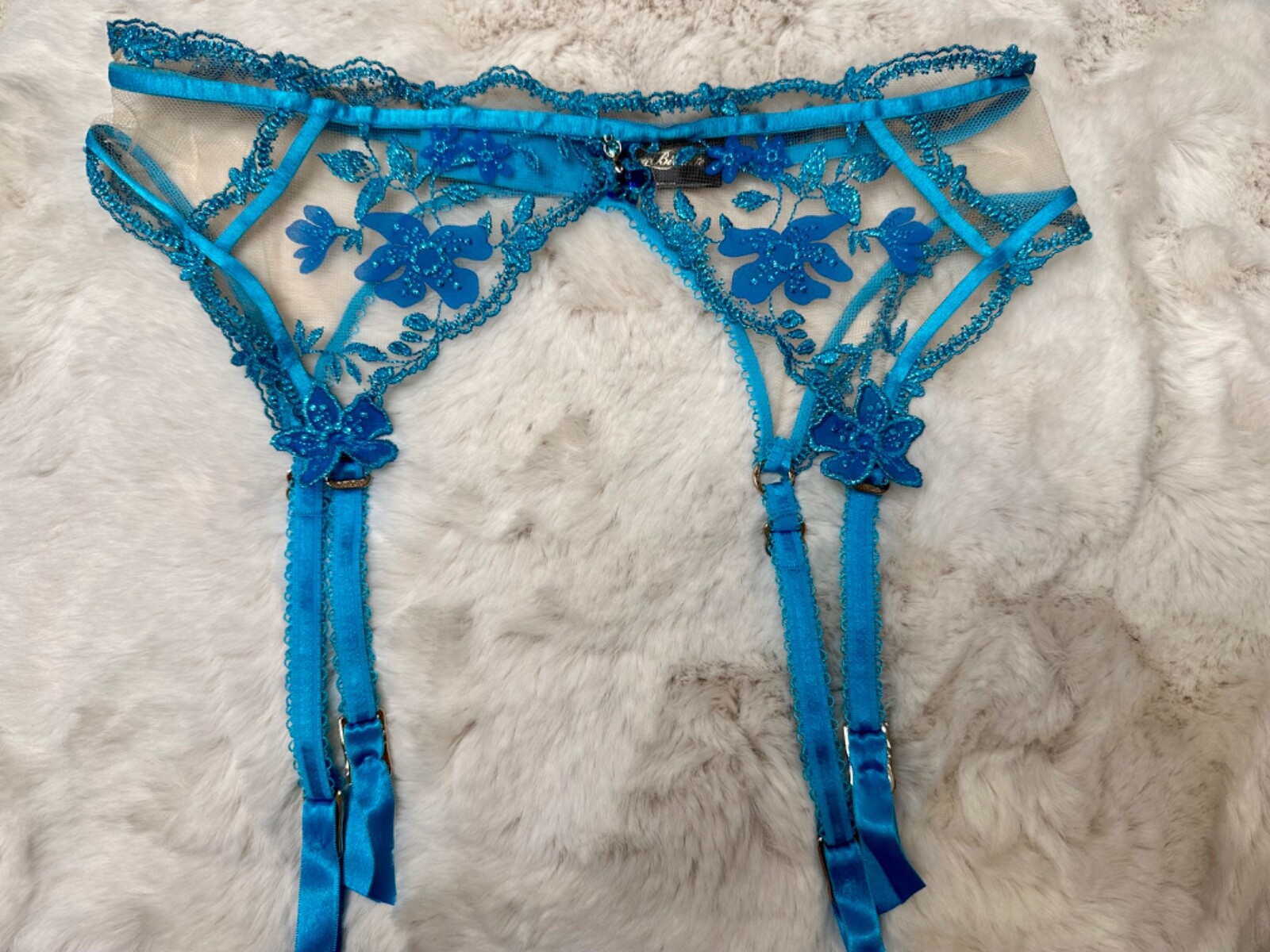 как выглядит Honey Birdette SABRINA  Blue Floral Garter Suspender Belt Small фото