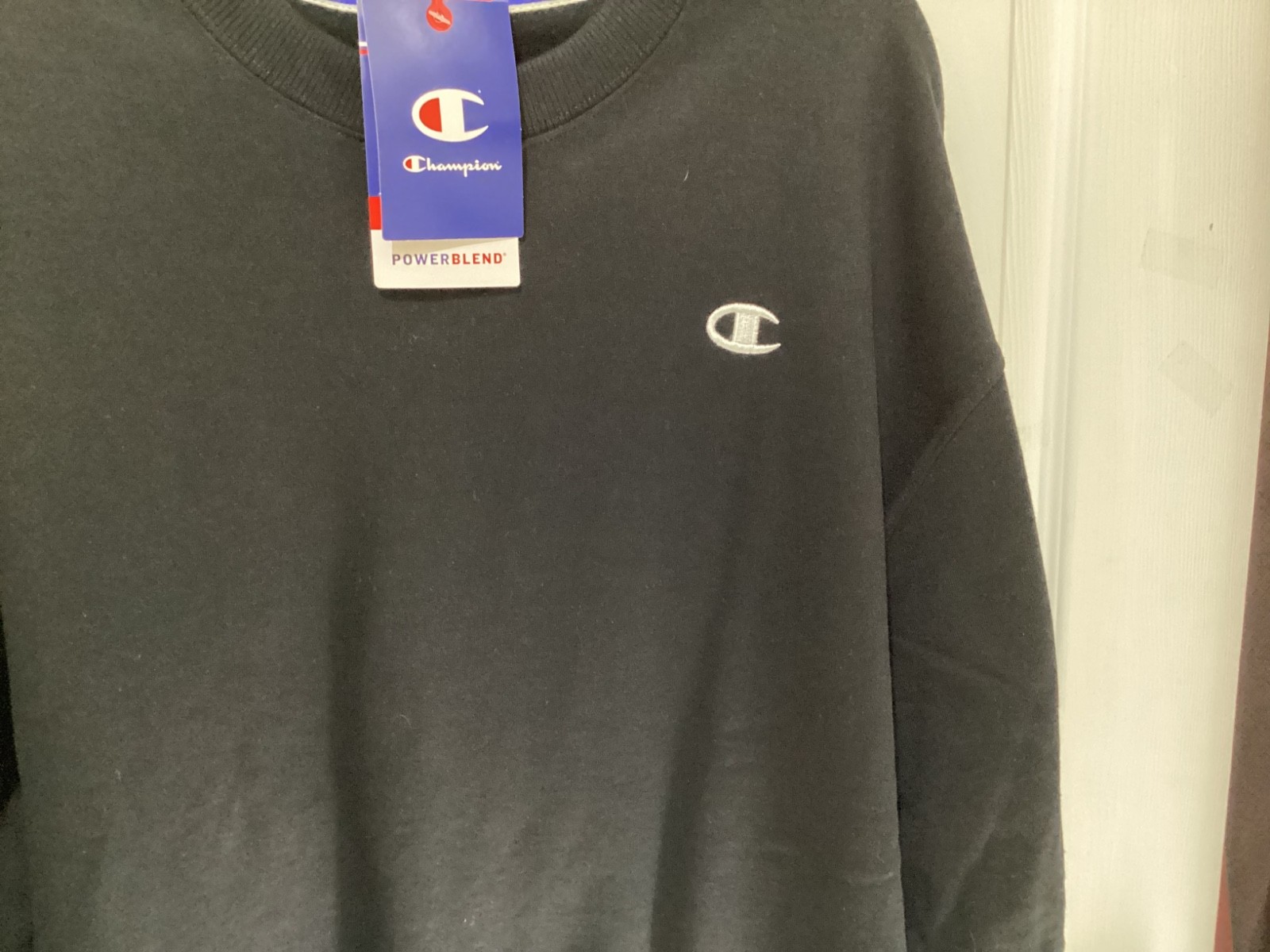как выглядит Champion Men s Powerblend Fleece Crew Neck Sweatshirt Color Black XL NWT фото