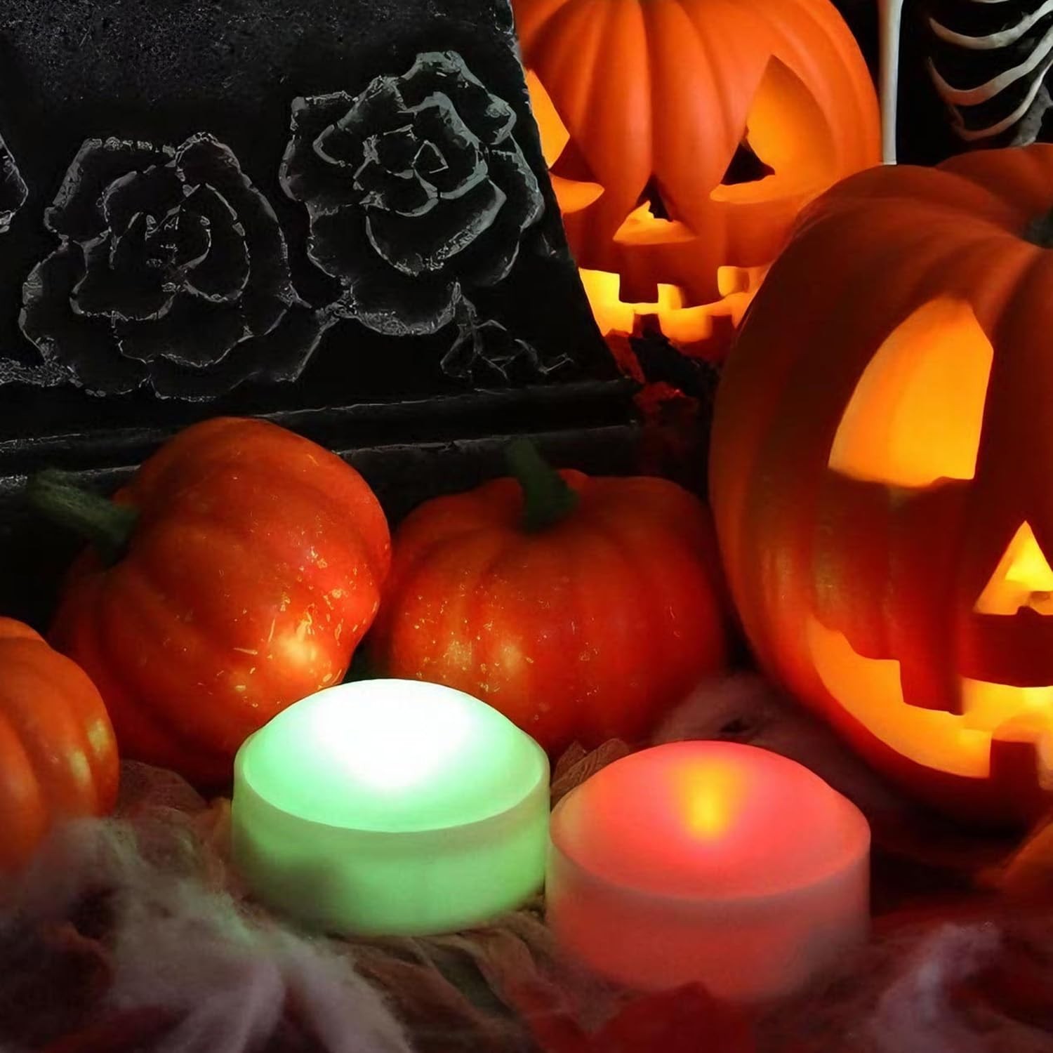 2 PCS Color Changing Halloween LED Pumpkin Candle Lights with Remote and Time...