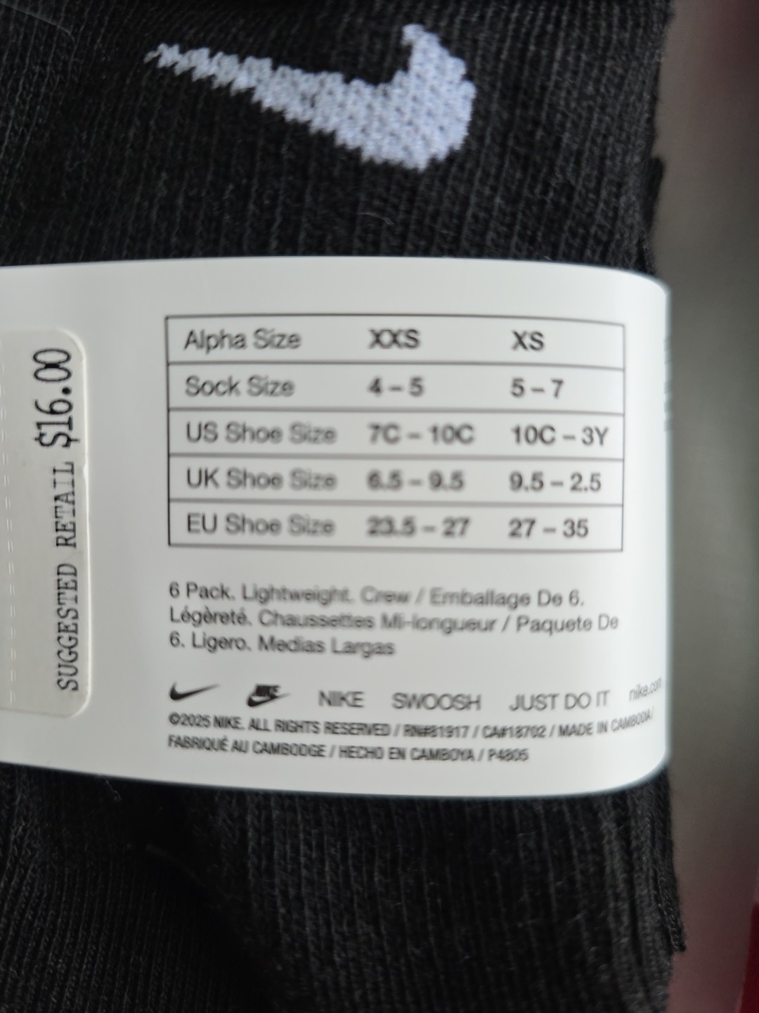 как выглядит Nike Crew Socks 6 Pairs Dri Fit Boys Black Youth Size 7C-10C фото