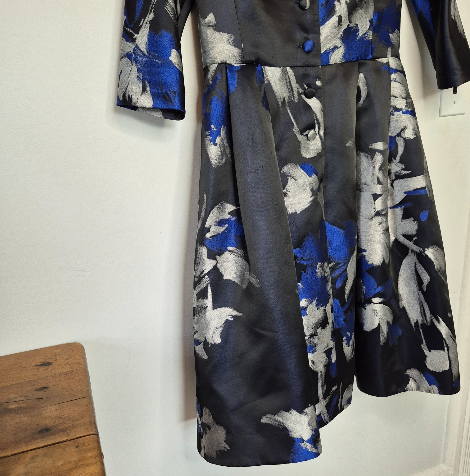 как выглядит Rickie Freeman Teri Jon sz 8 V-Neck Blue Dress Formal Gown Button Front Floral фото