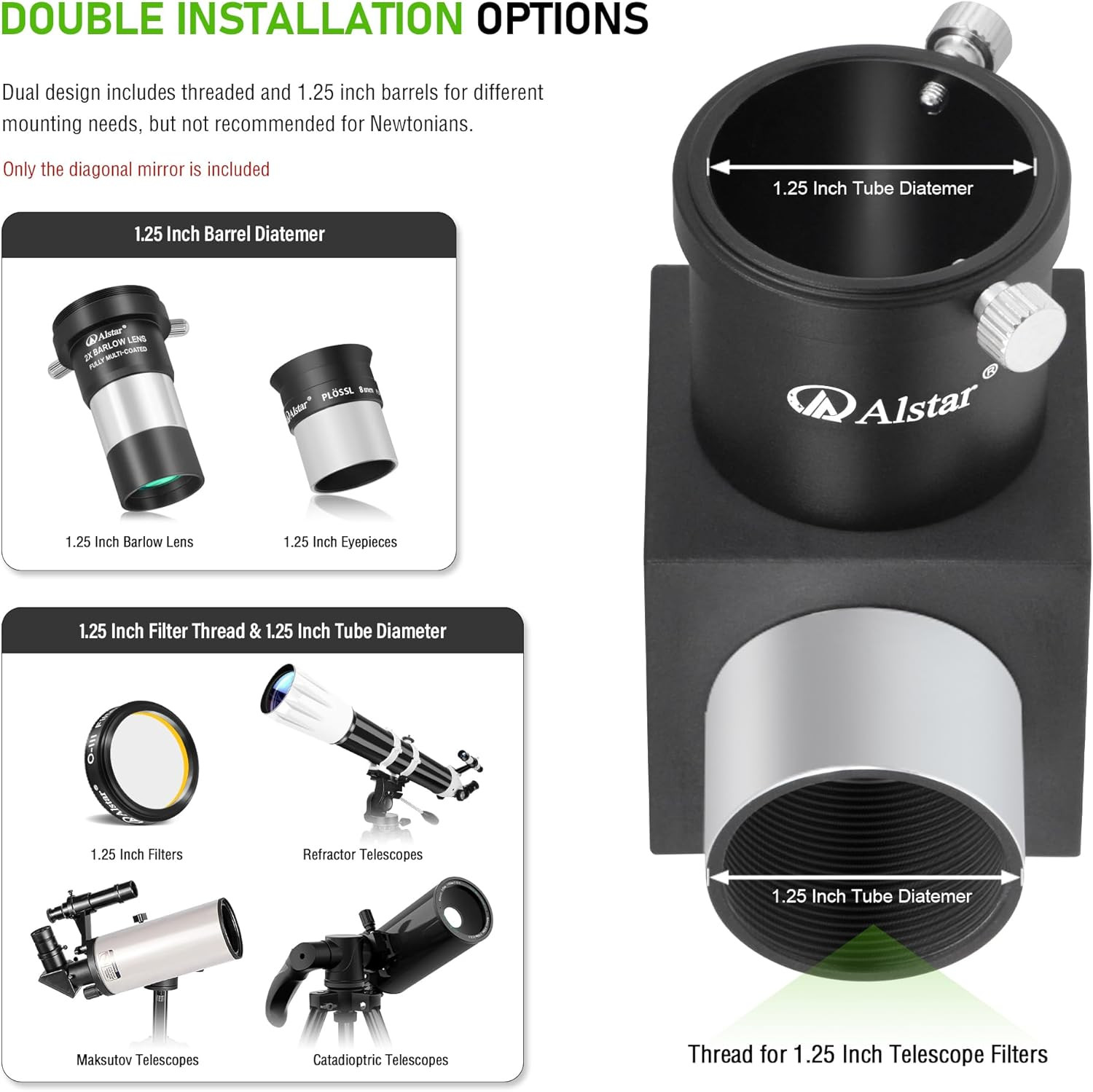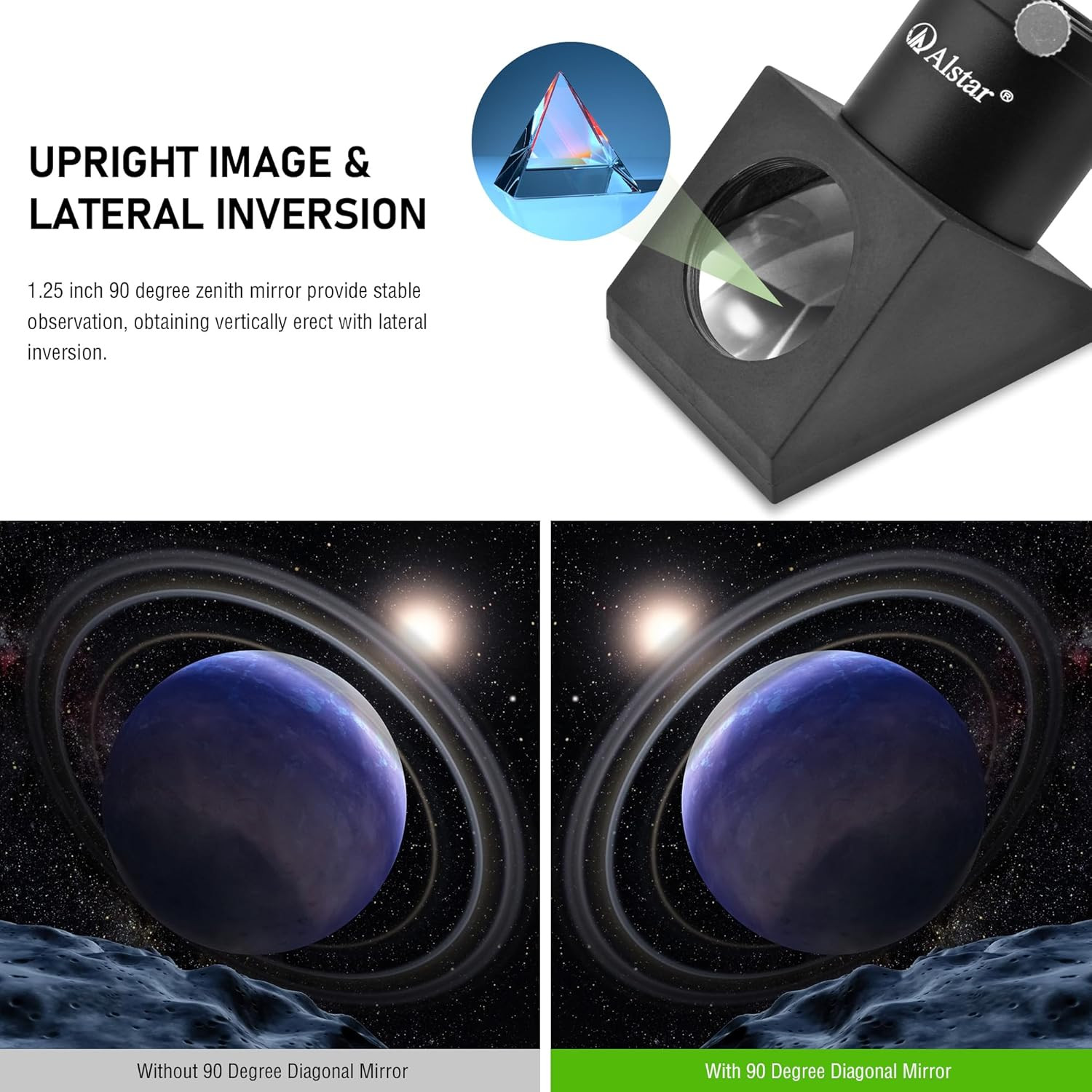 Diagonal Mirror 90 Degree, Telescope Diagonal 1.25 Inches with Fixing Eyepiece T