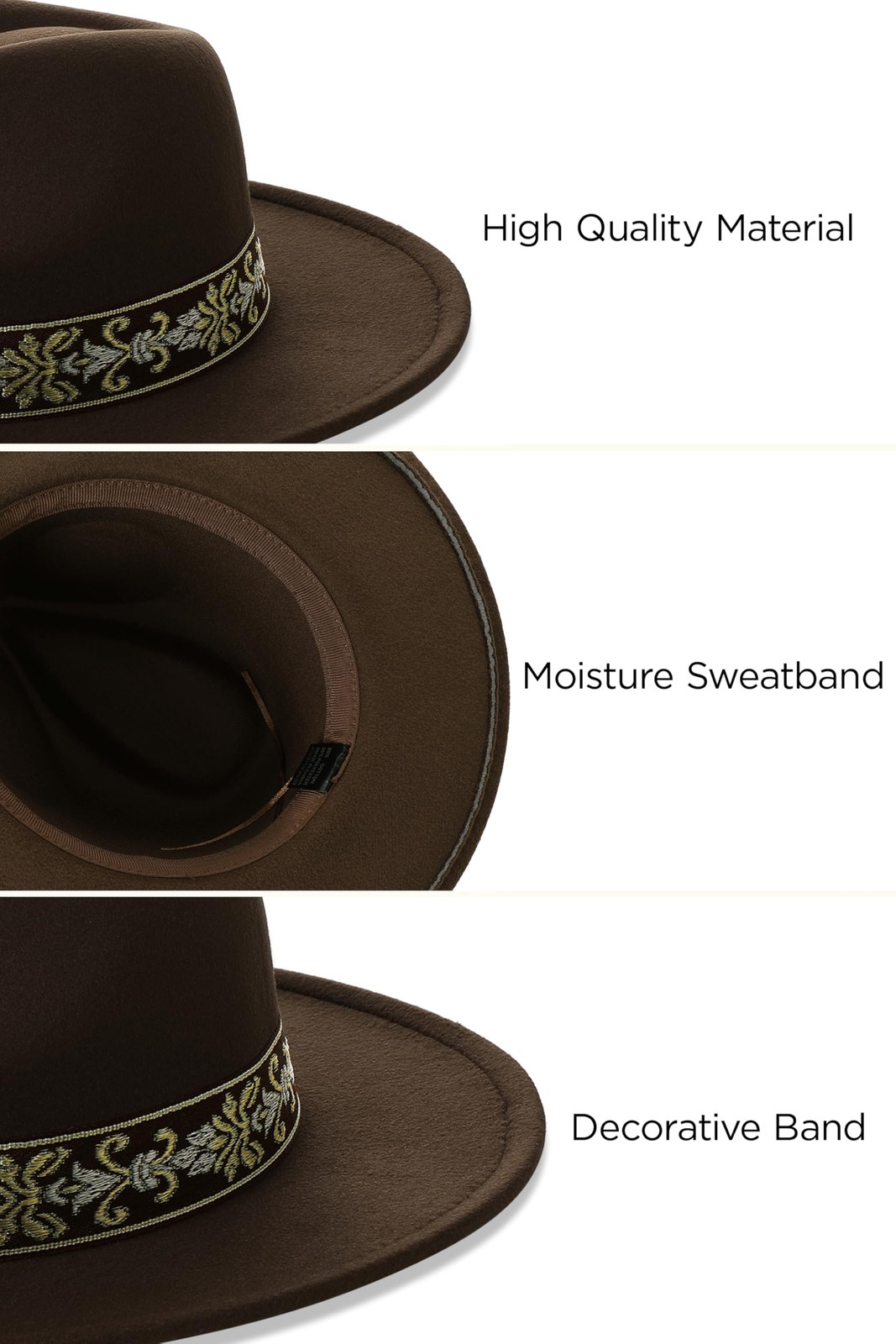 Wide Brim Boho Western Hat for Men and Women- Felt Fedora Hat with 4 inches F...