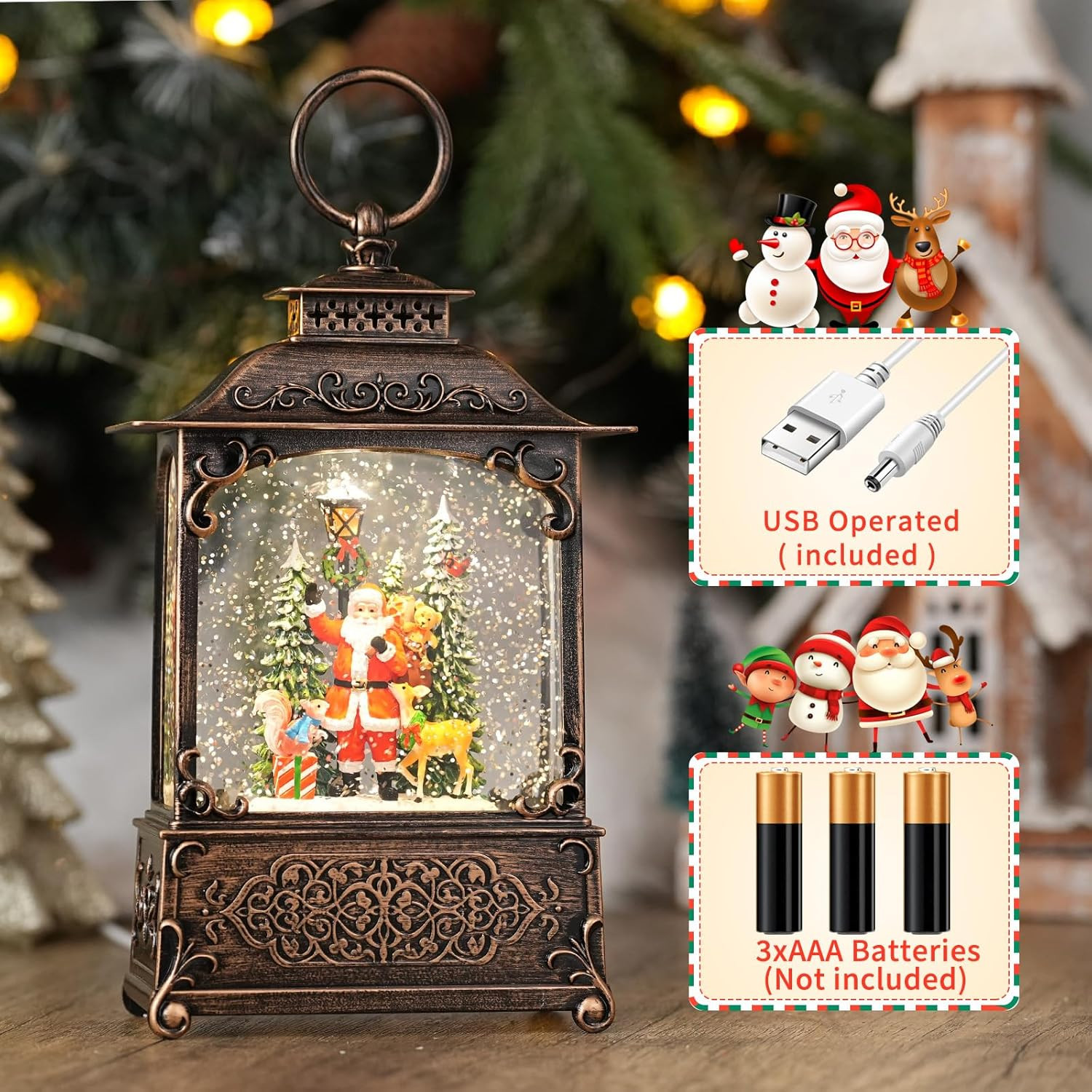 Snow Globe with Santa Claus Reindeer, Light up Christmas Snow Globes with Mus...
