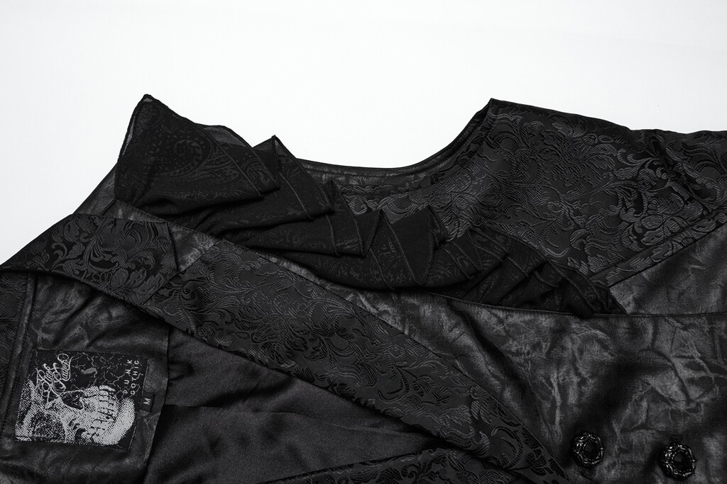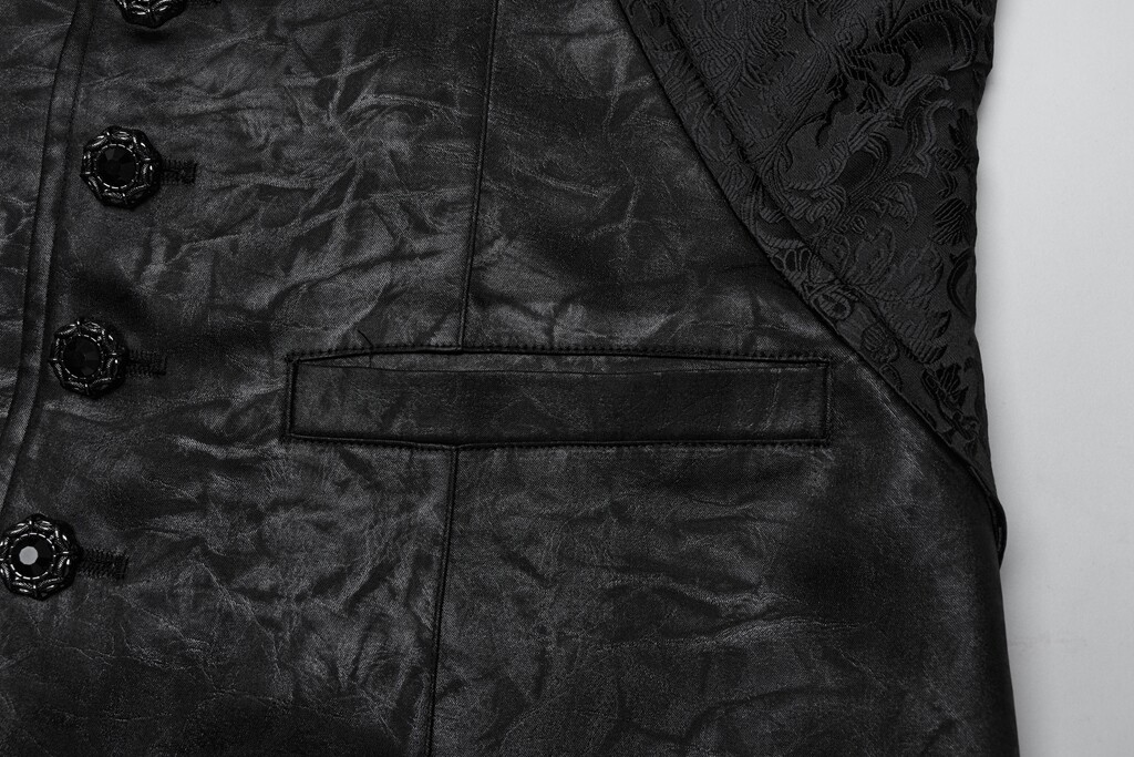Punk Rave Men Black Gothic Gorgeous Ruffle Trim Jacquard Vest Retro Waistcoat