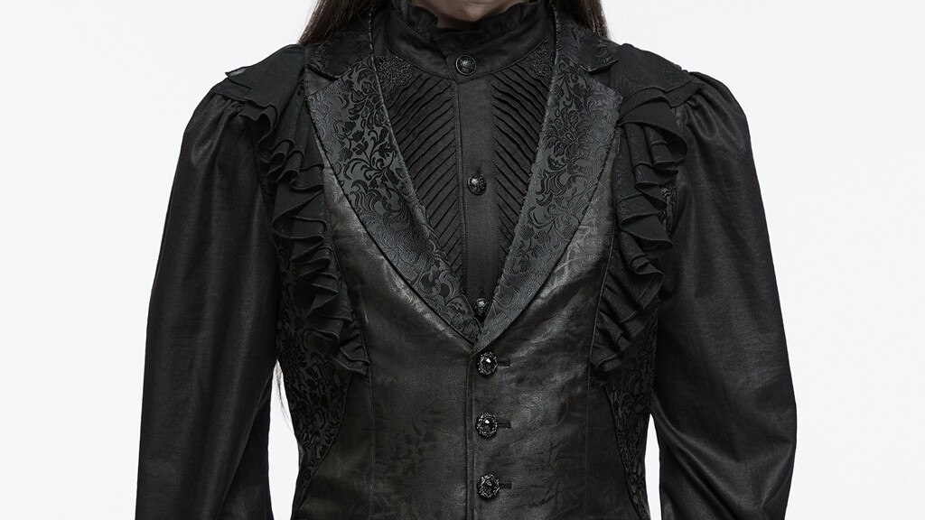 как выглядит Punk Rave Men Black Gothic Gorgeous Ruffle Trim Jacquard Vest Retro Waistcoat фото