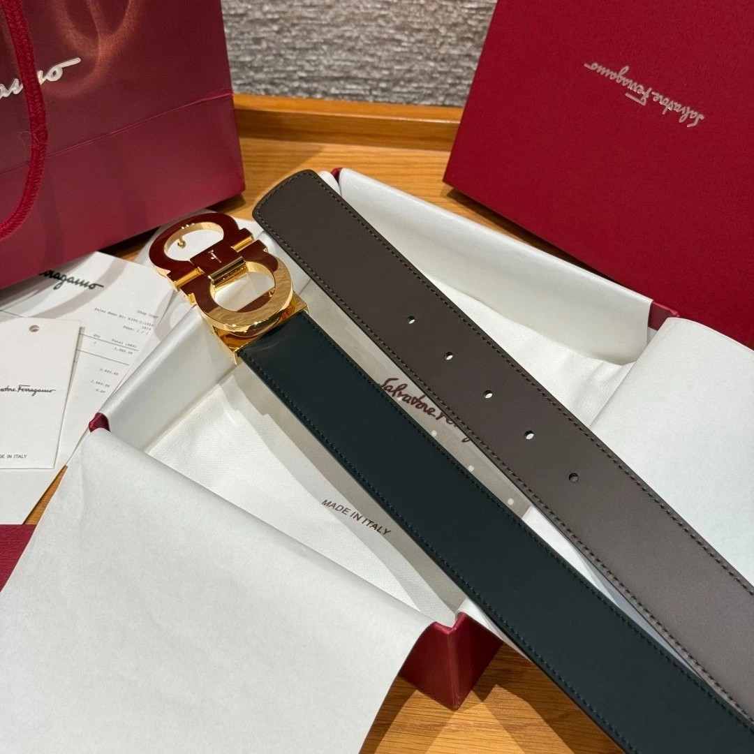 Salvatore Ferragamo Reversible Leather Belt Gancini Buckle NEW