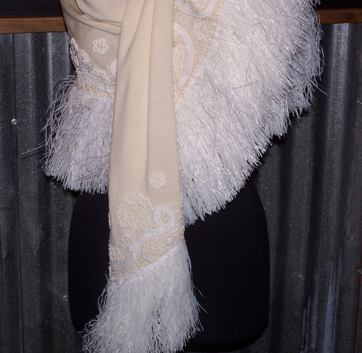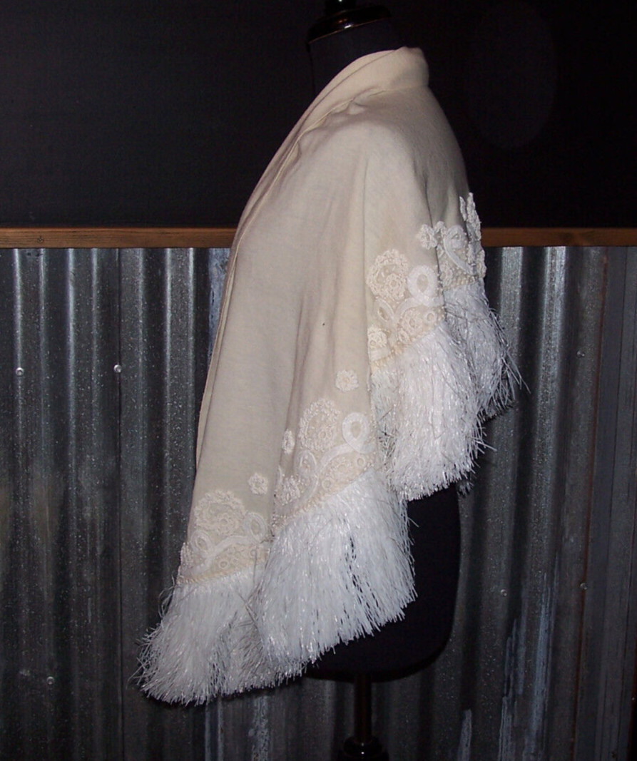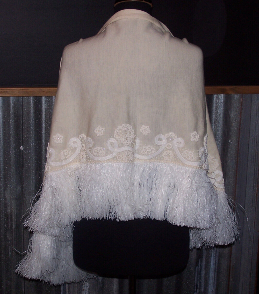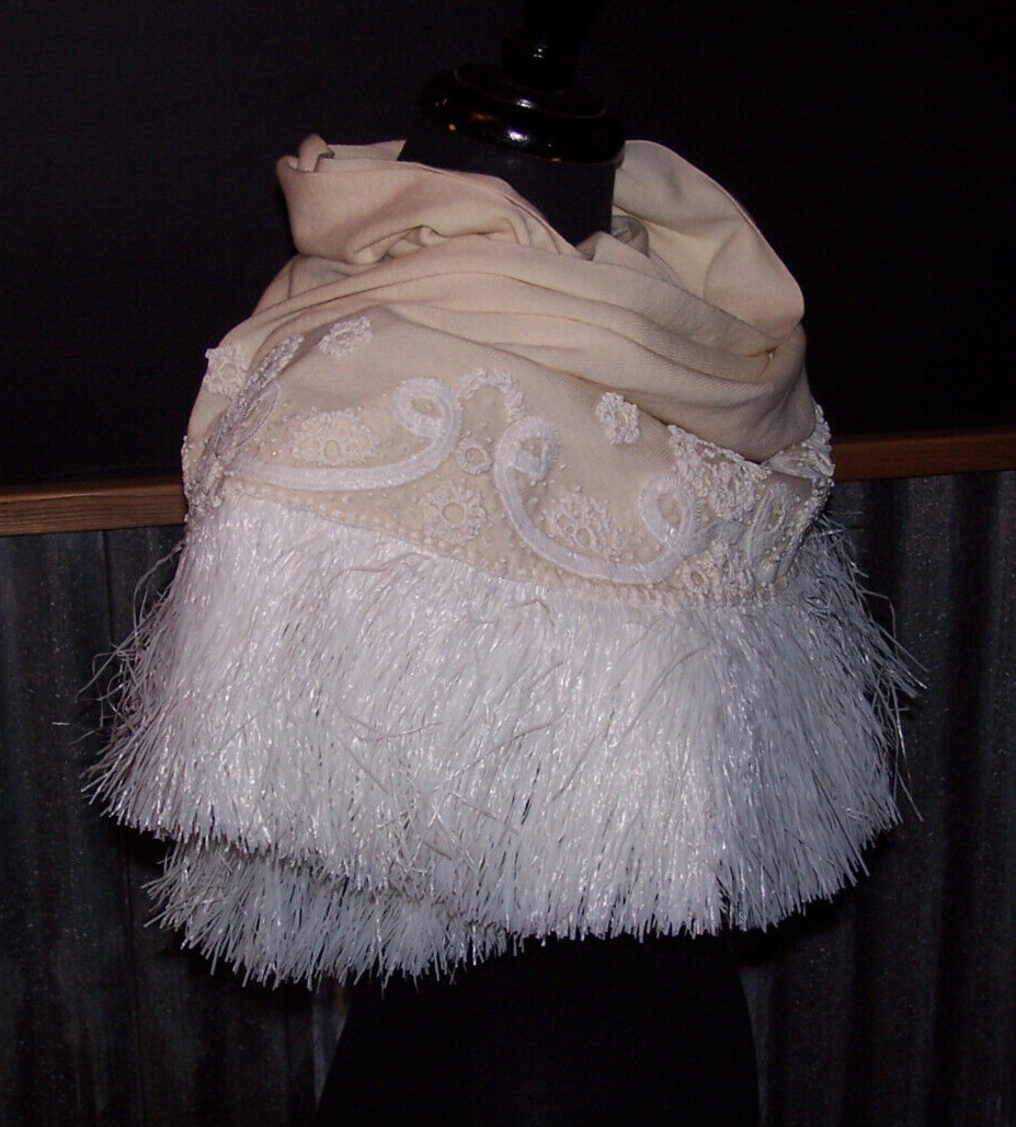 как выглядит 1960s Vtg Marvienne Vienna Wool Wedding Shawl/Glamour Wrap/Beads/Sequins/Fringe фото