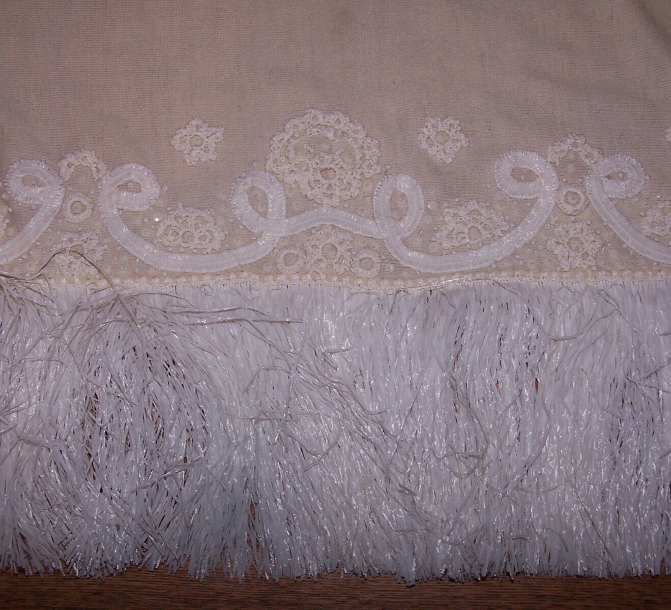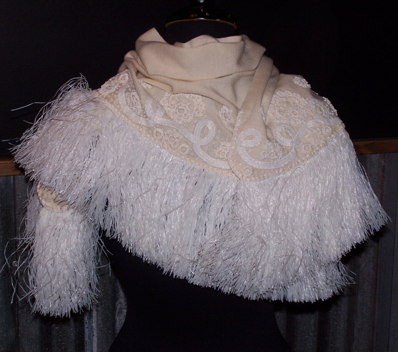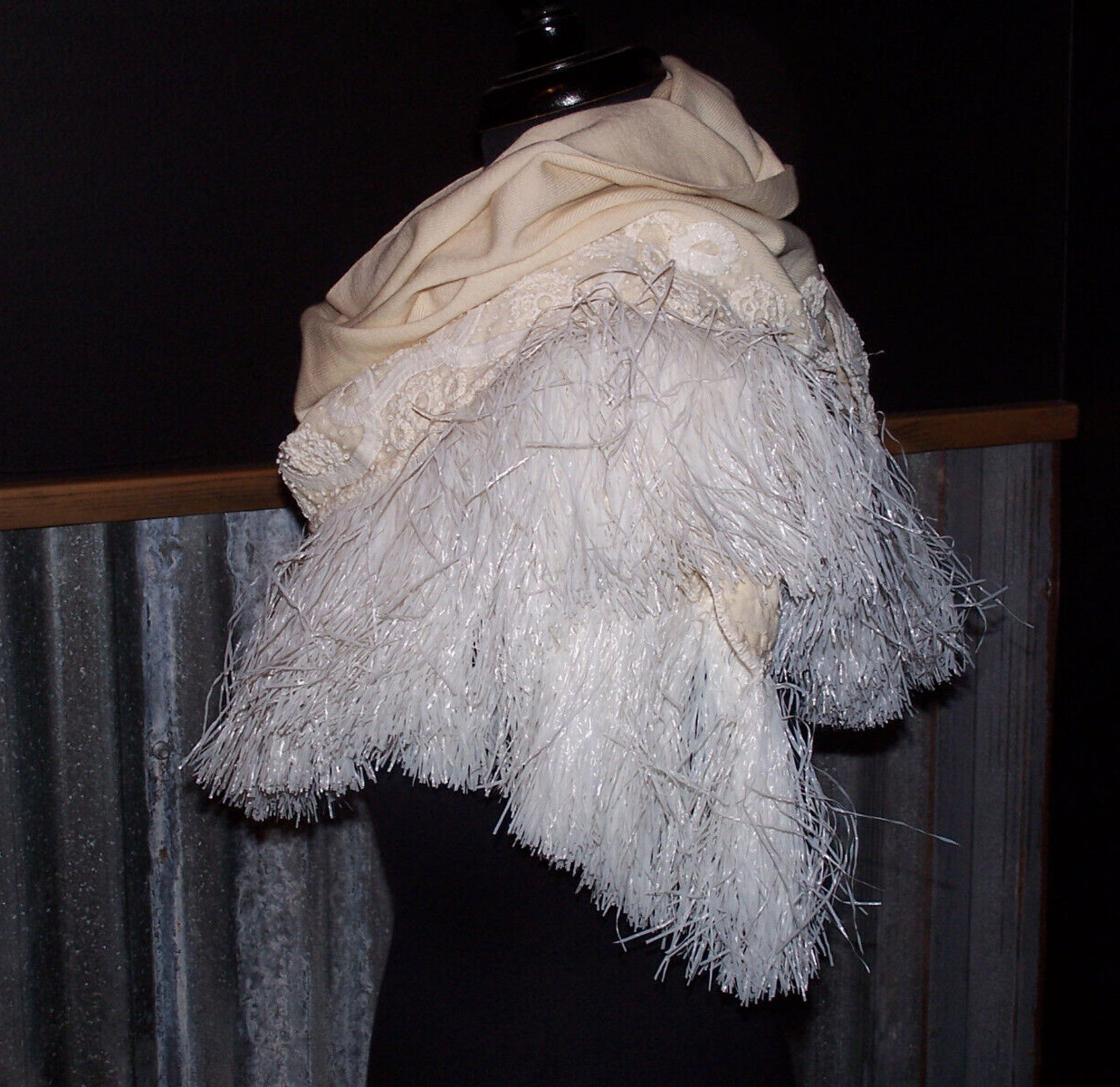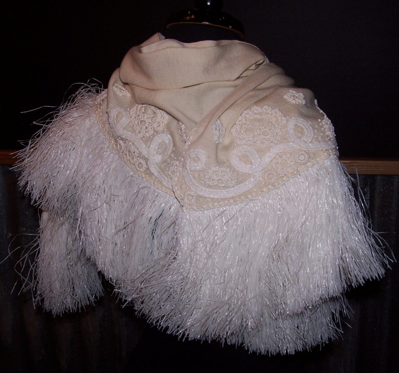 как выглядит 1960s Vtg Marvienne Vienna Wool Wedding Shawl/Glamour Wrap/Beads/Sequins/Fringe фото