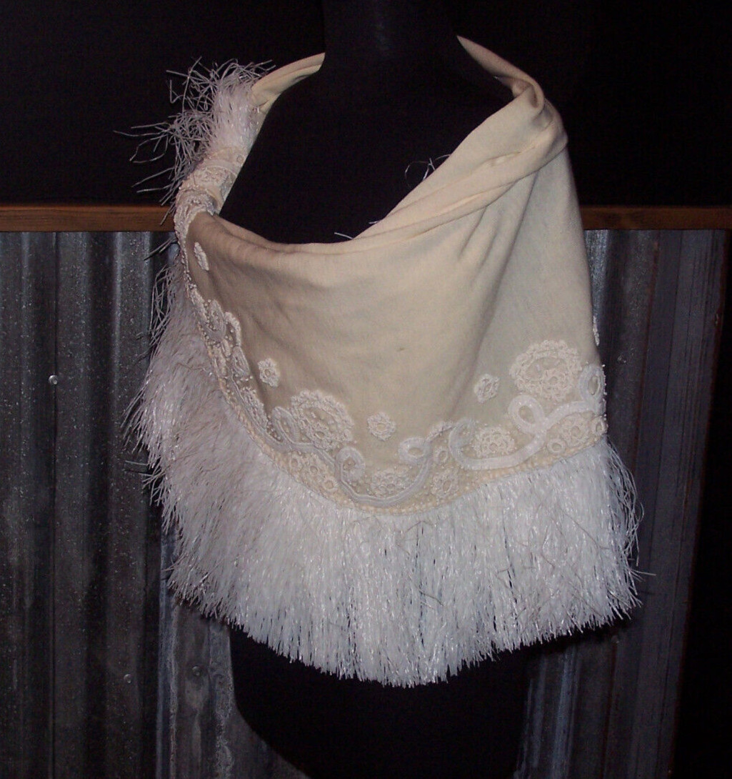 1960s Vtg Marvienne Vienna Wool Wedding Shawl/Glamour Wrap/Beads/Sequins/Fringe