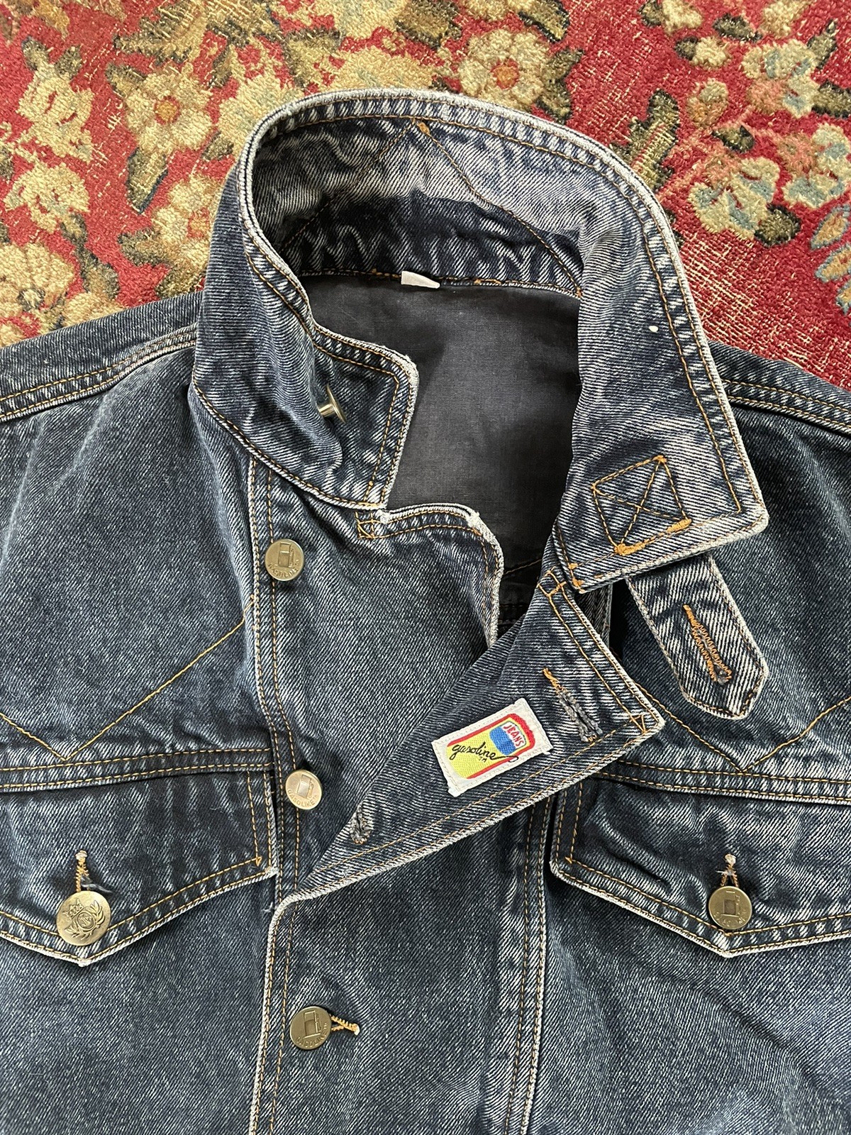 как выглядит Vintage 1980 s Gasoline Jeans Denim Jacket Dark Stonewash Jean Jacket Oversized фото