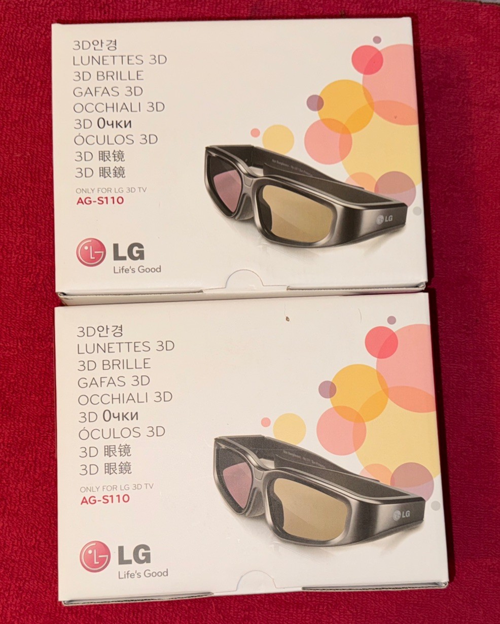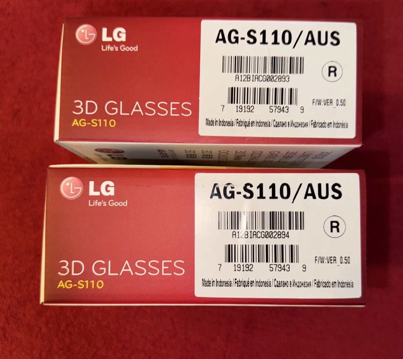 Lot of 2 Genuine LG 3D Glasses TV AG-S110 Active Shutter Glasses New