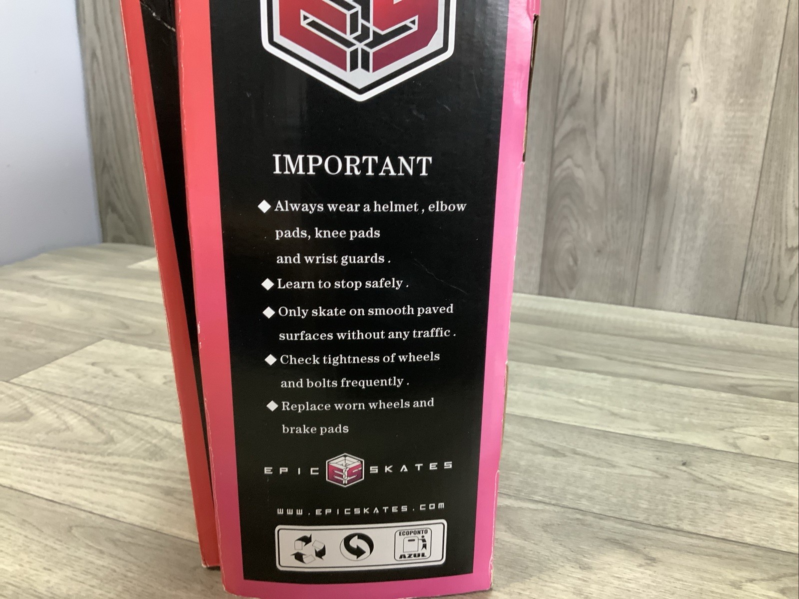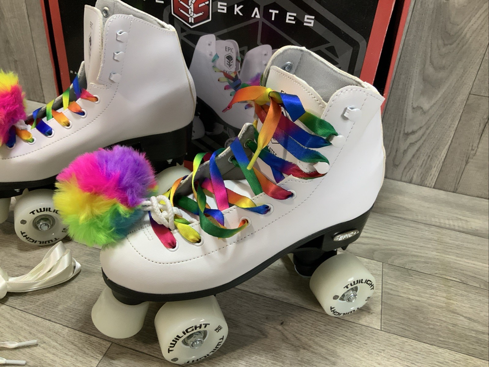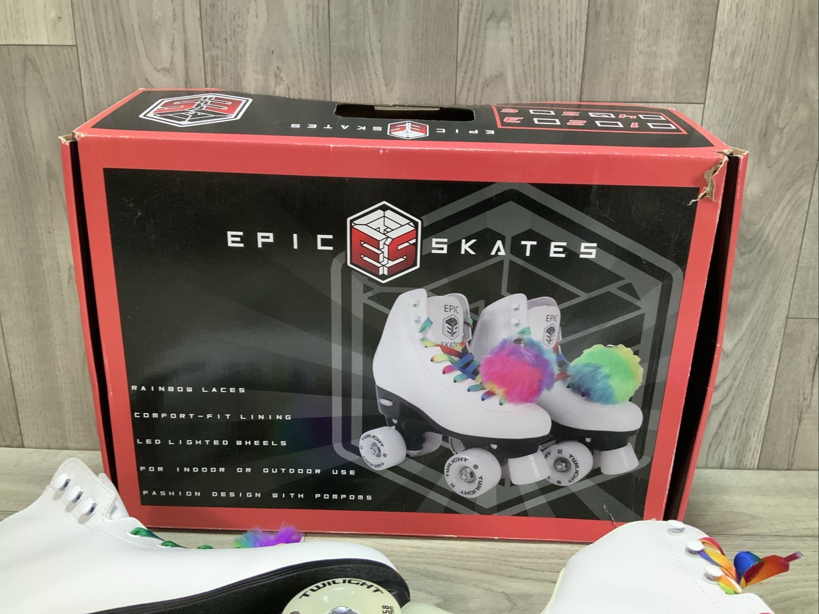 Epic Roller Skates w/ Rainbow Twilight LED Light Up Wheels PomPoms Size 5 NEW