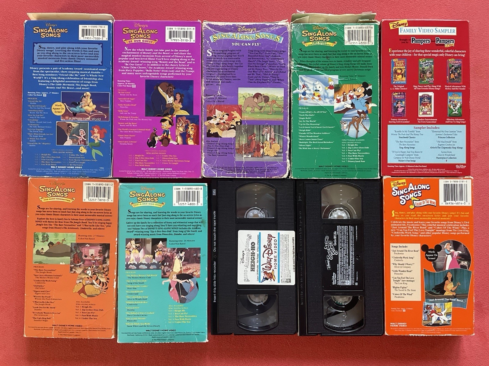 Disney Sing-Along Songs VHS Lot Of 10 Tapes Zip A Dee Pocahontas Family Sampler