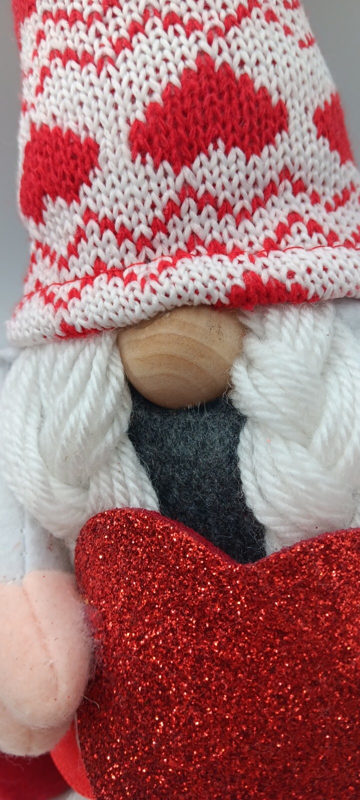 Set of 2 Valentine's Day Gnomes. Red Hearts, Braids, Wooden Noses Cupids Bow