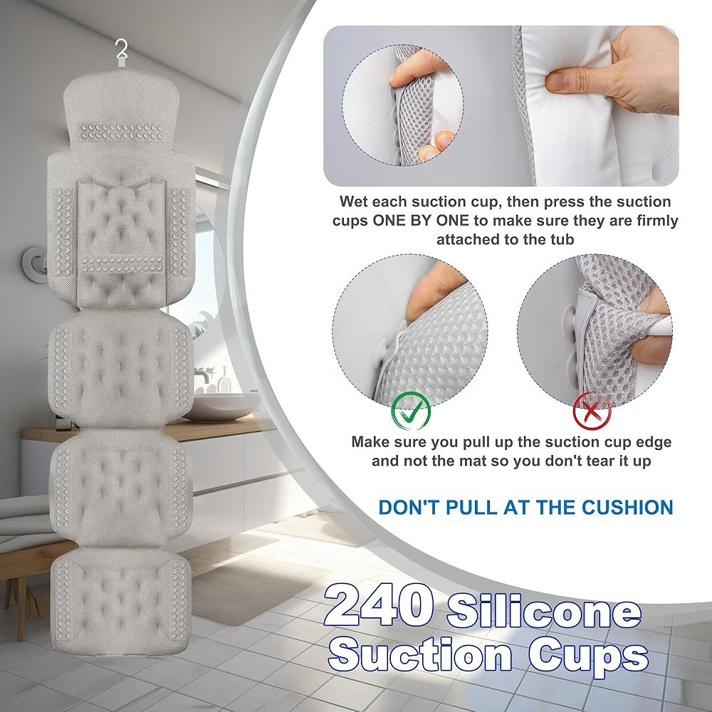 как выглядит Luxury Full Body Bath Pillow for Bathtub, Thick Bathtub Cushion 63" x 16", White фото
