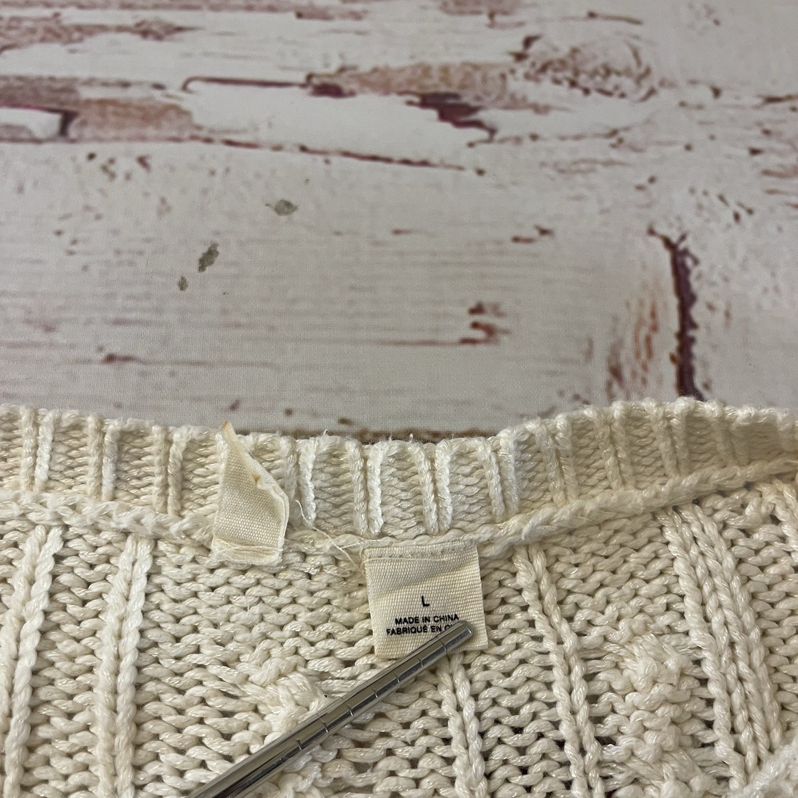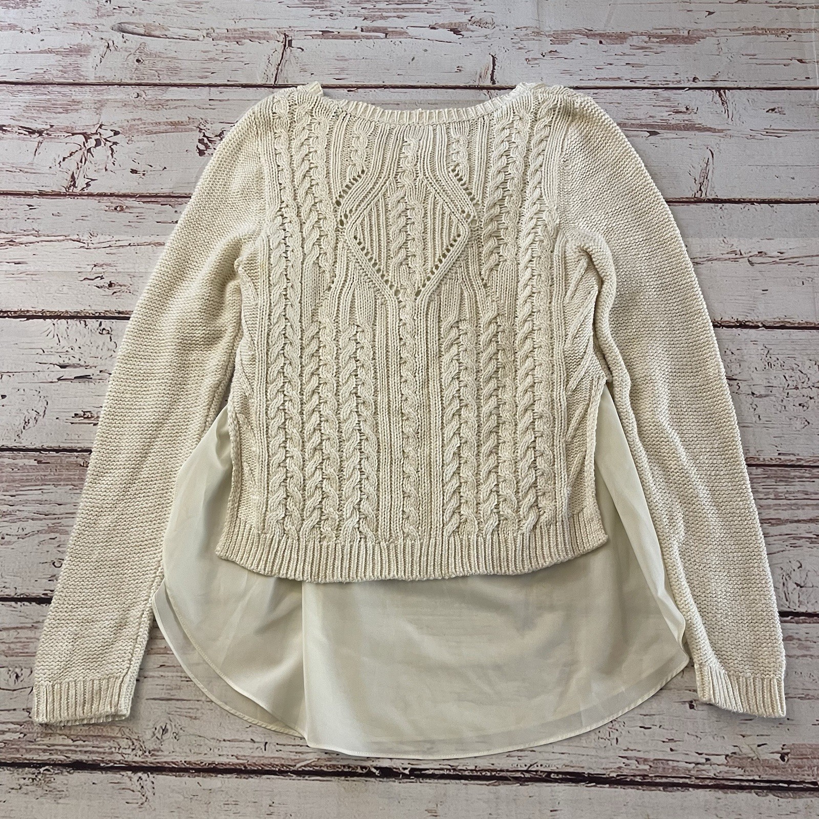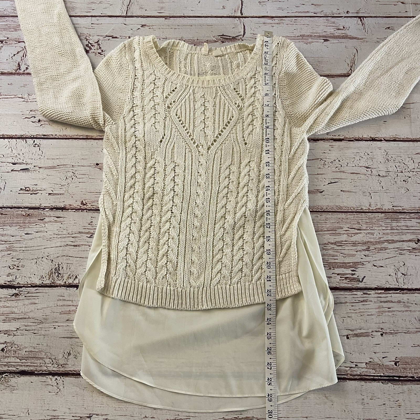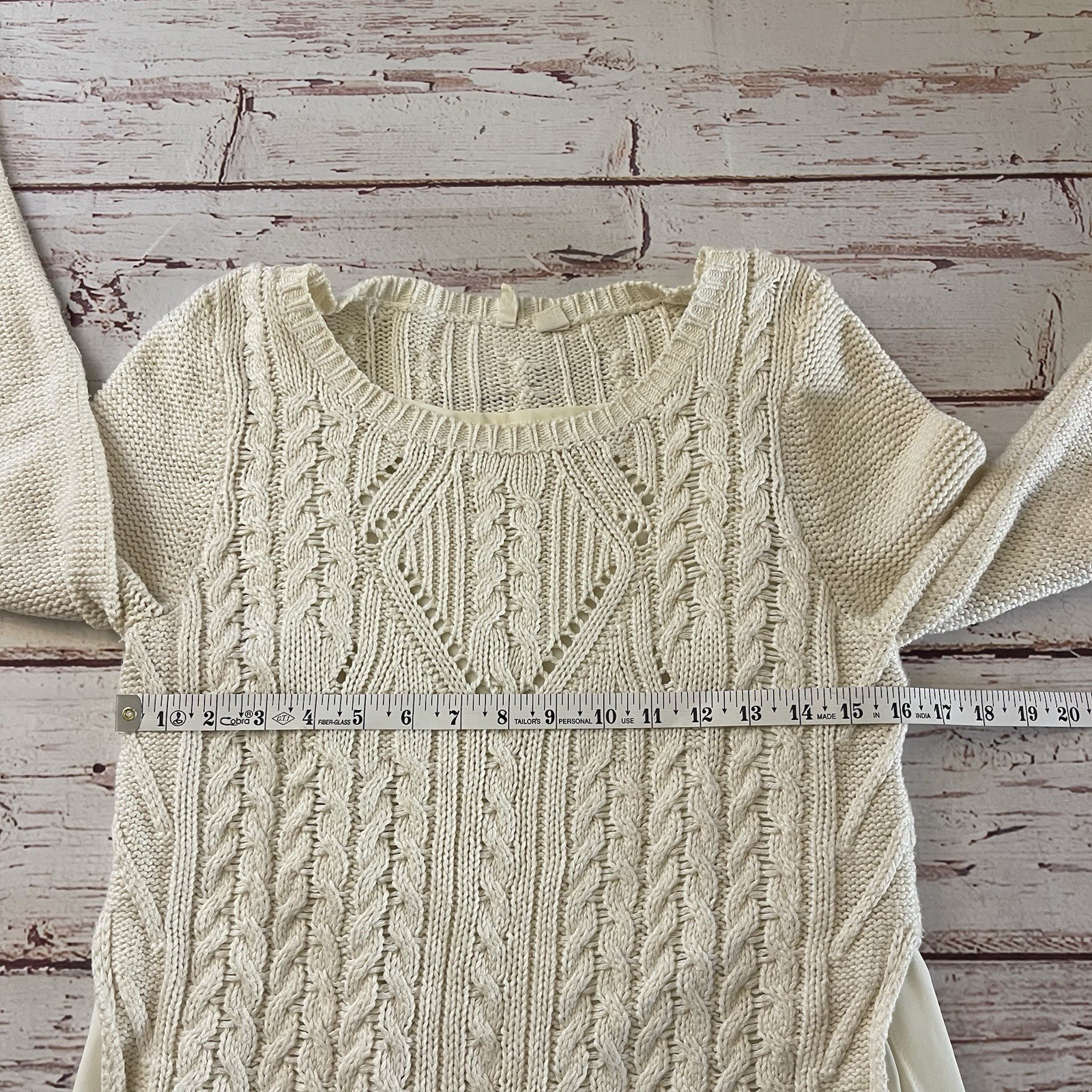 Anthropologie x Moth Cream Cableknit Layered Sheer Sweater Size Large Ivory