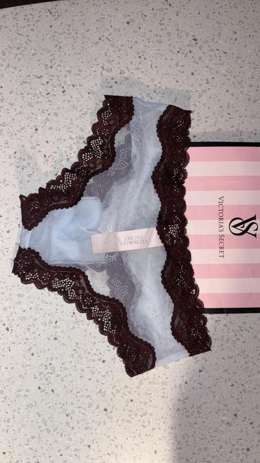 как выглядит NWT Victorias Secret Tease Mesh Lace-Trim Cheeky Panty Size XS фото