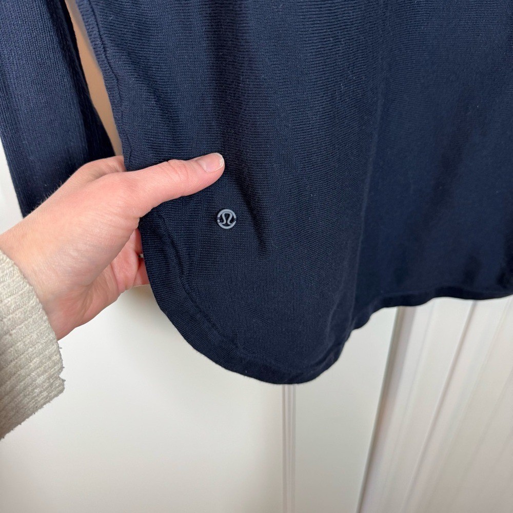 как выглядит Lululemon 100 Merino Wool Long Sleeve Sweater Navy Blue Sz 8 - Great Condition фото