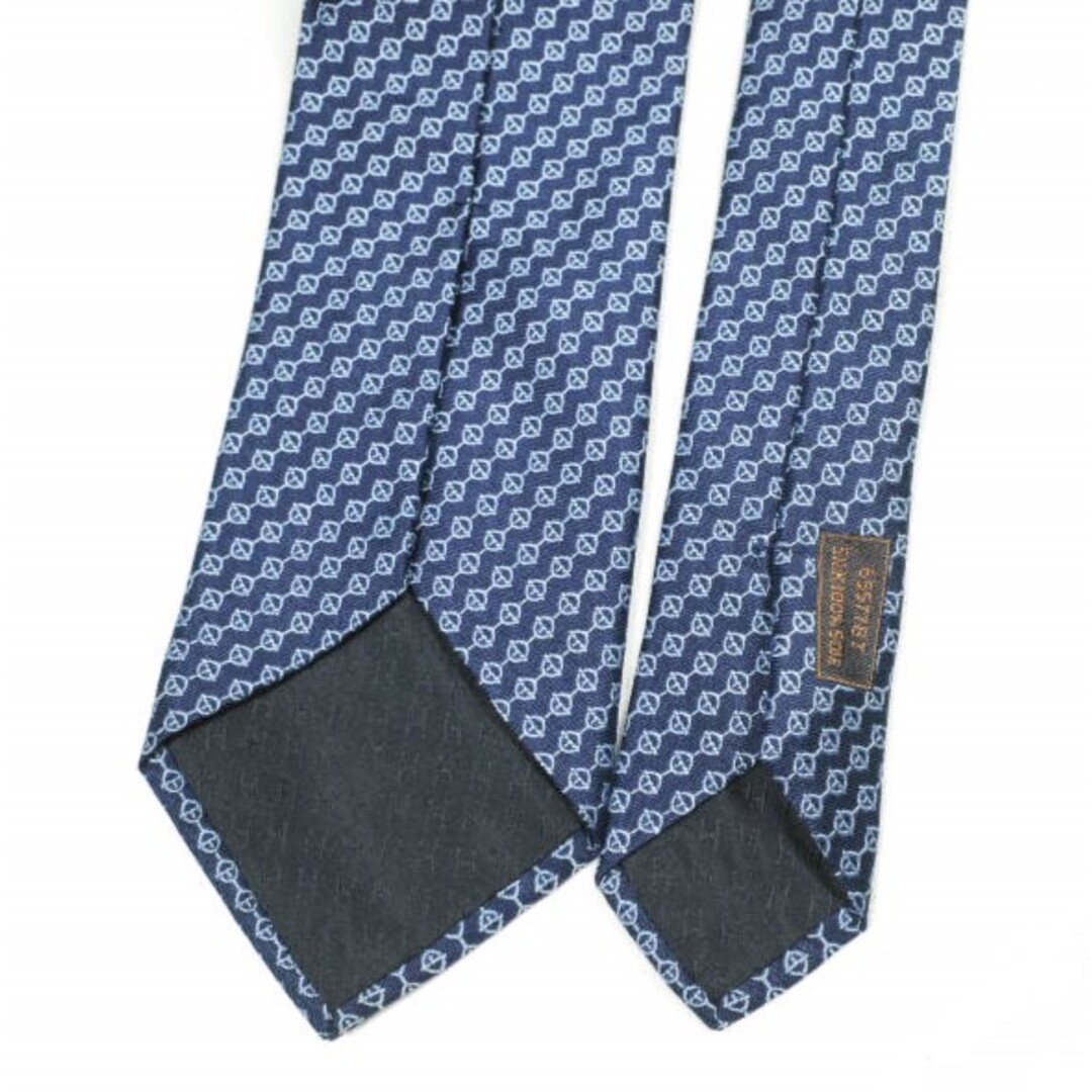 как выглядит Excellent Condition HERMES Made in France Small Pattern Silk Tie 8cm NAVY BLUE фото
