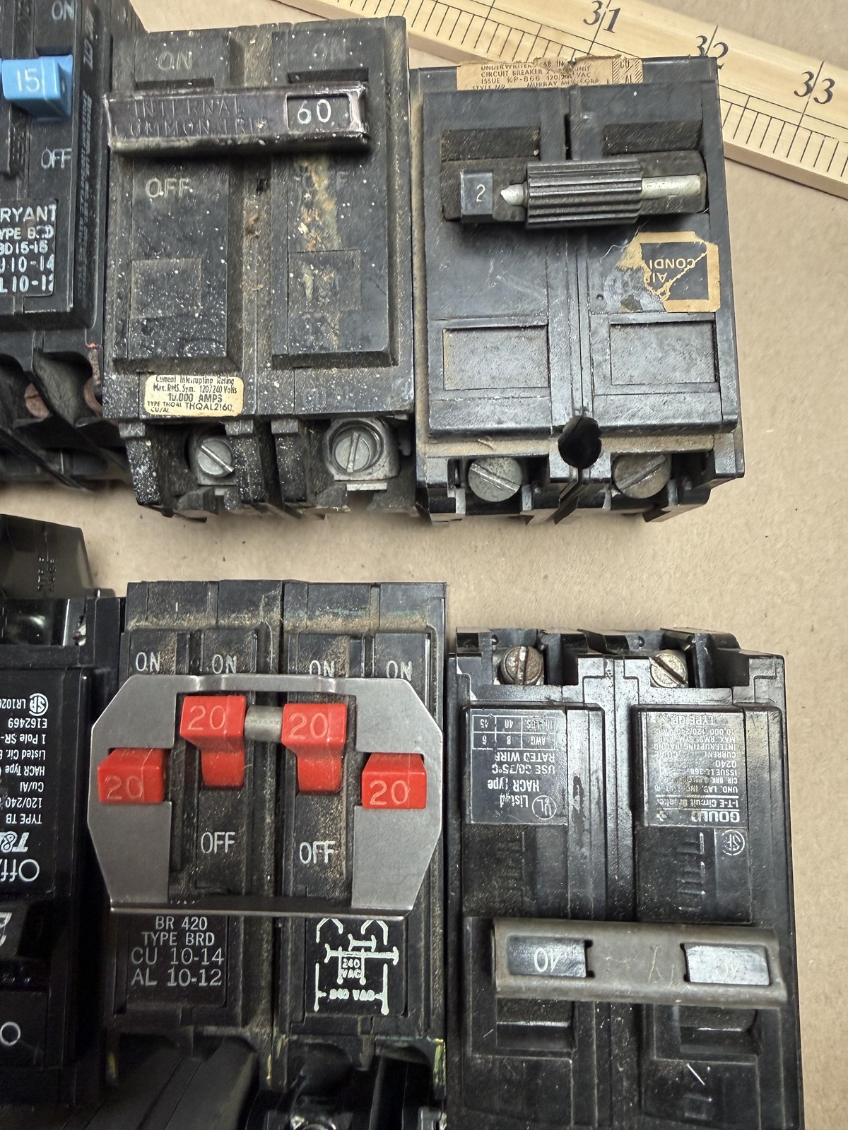 Mixed Lot Circuit Breakers Bryant GE Cutler Hammer Gould 10-150A Black Used Mix