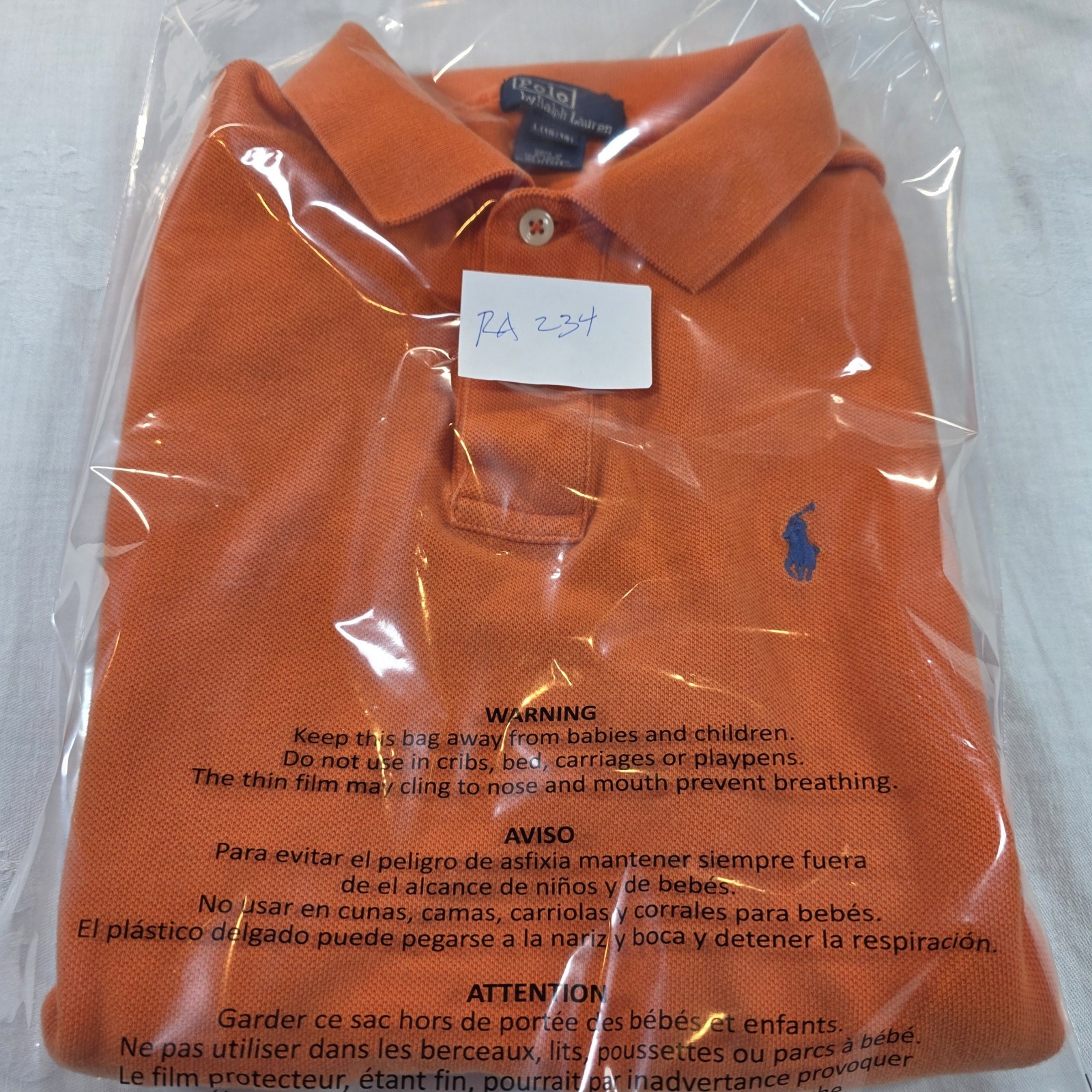Polo Ralph Lauren Boy's L 16/18 Long Sleeve Pullover Orange Shirt Rugby Hiking