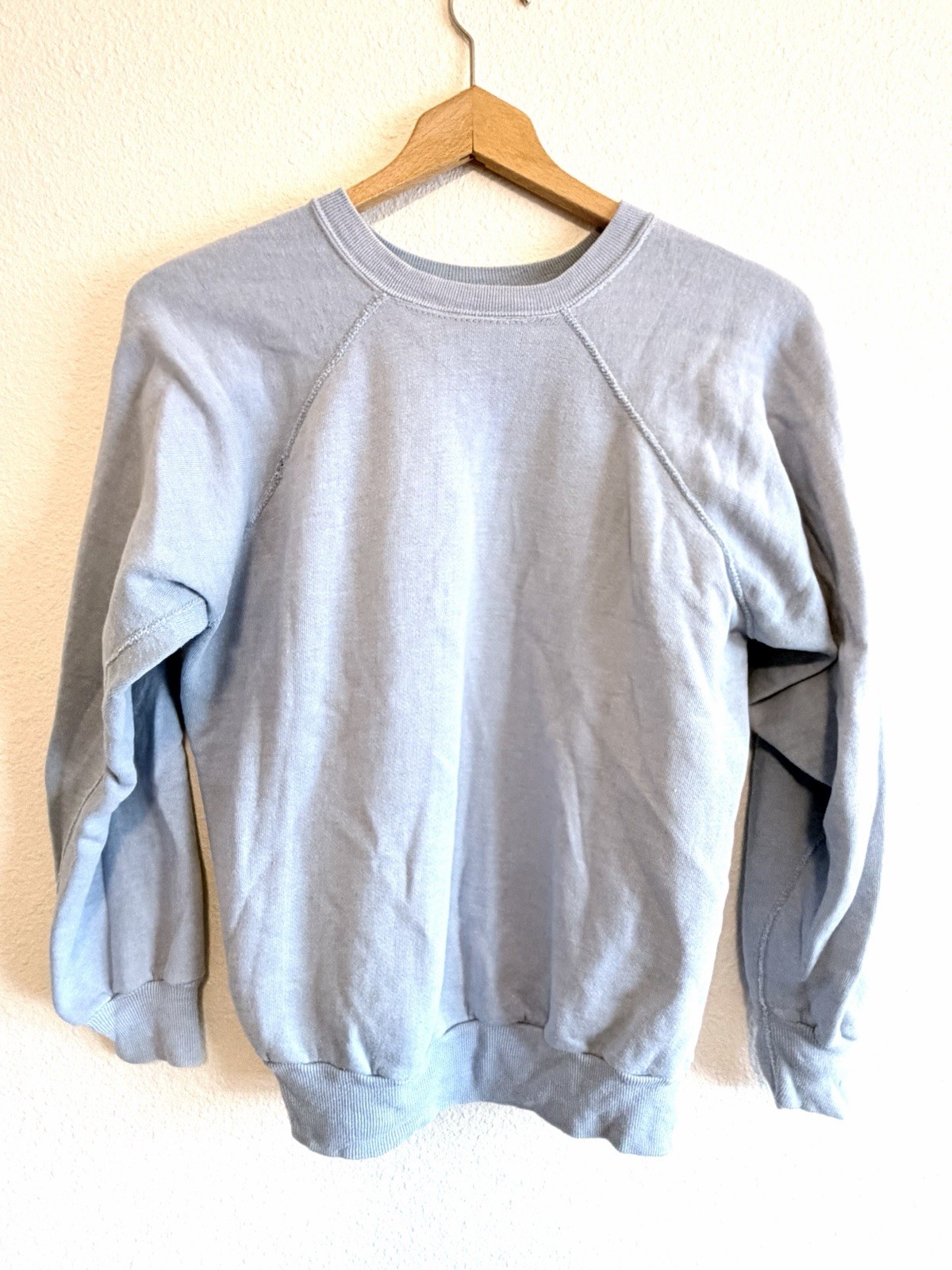 как выглядит VTG 60s 70s KINGS ROAD SEARS CREW NECK RAGLAN SWEATSHIRT Large BLUE BLANK USA фото