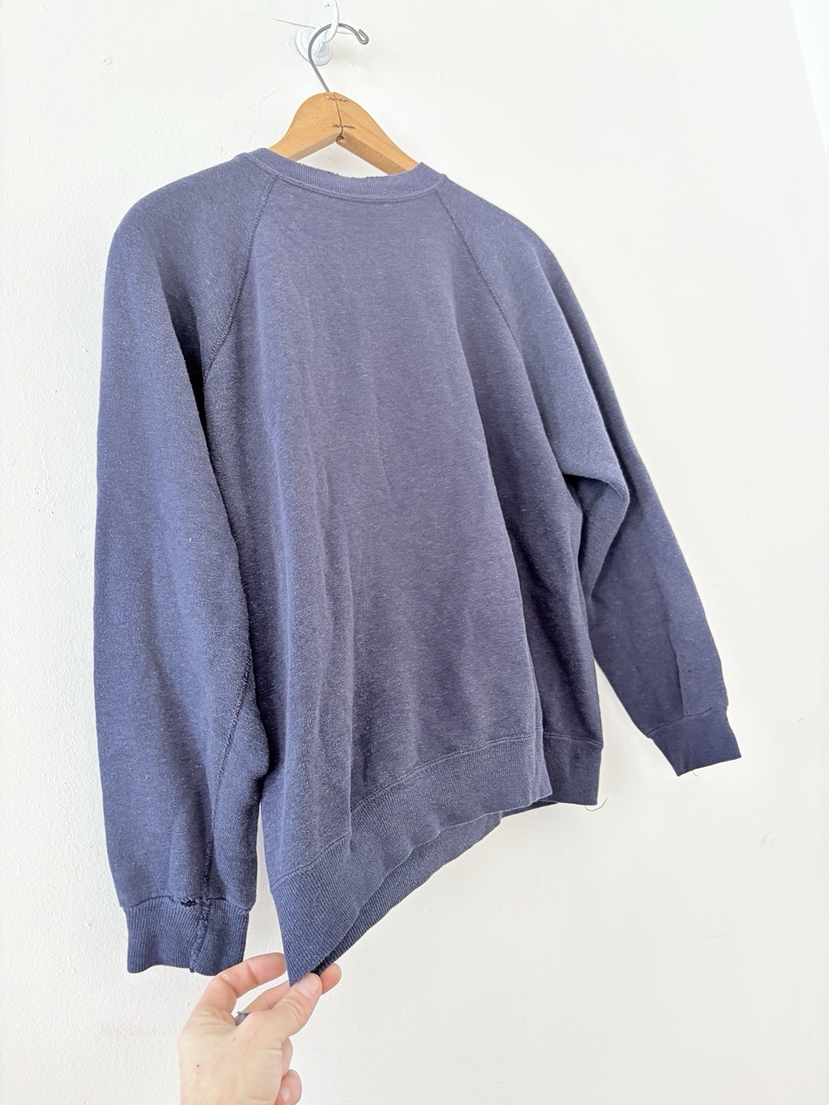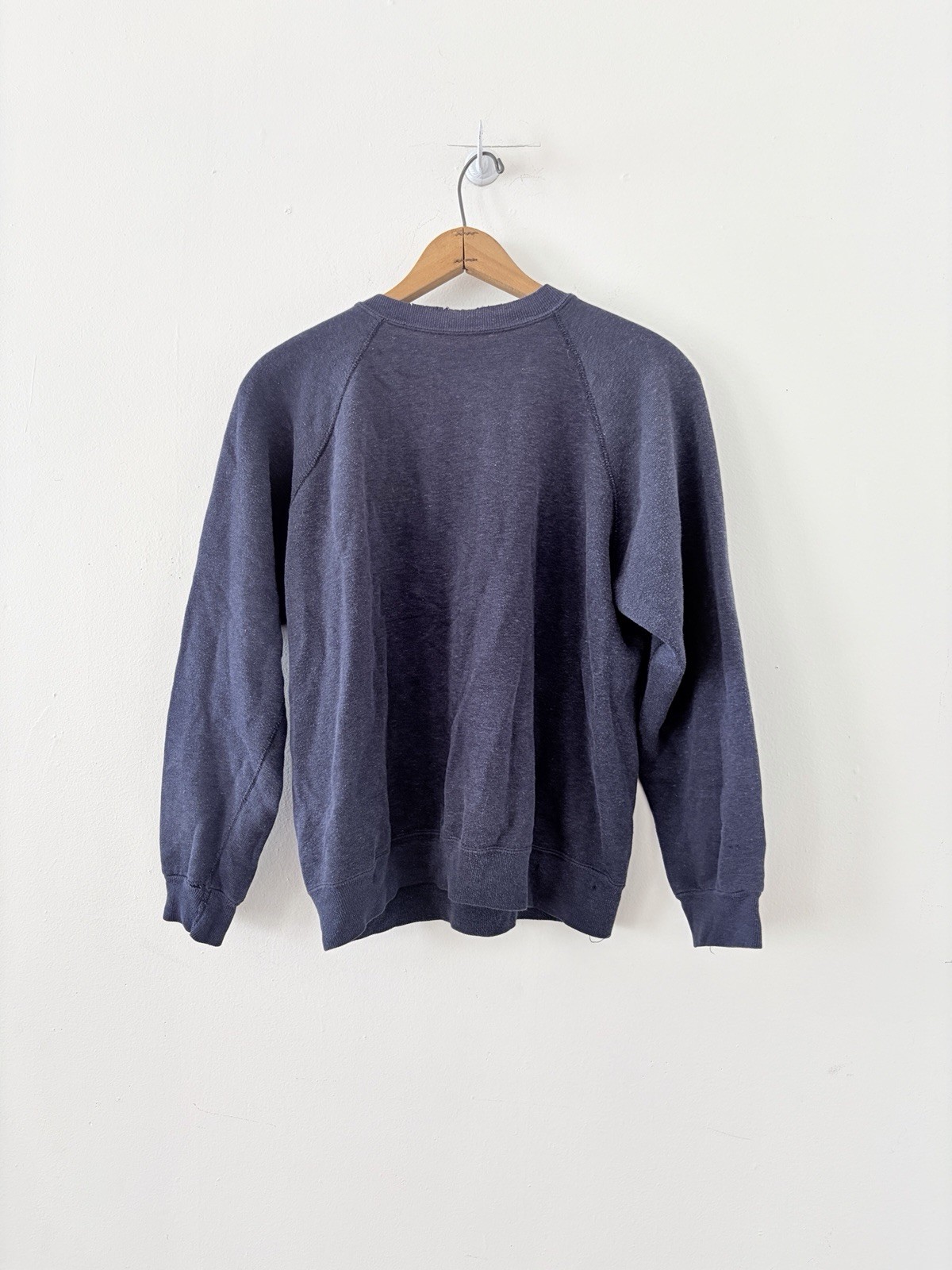 как выглядит Vintage Mens 1970s Navy Blue Heavy Faded Distressed Raglan Sweatshirt фото
