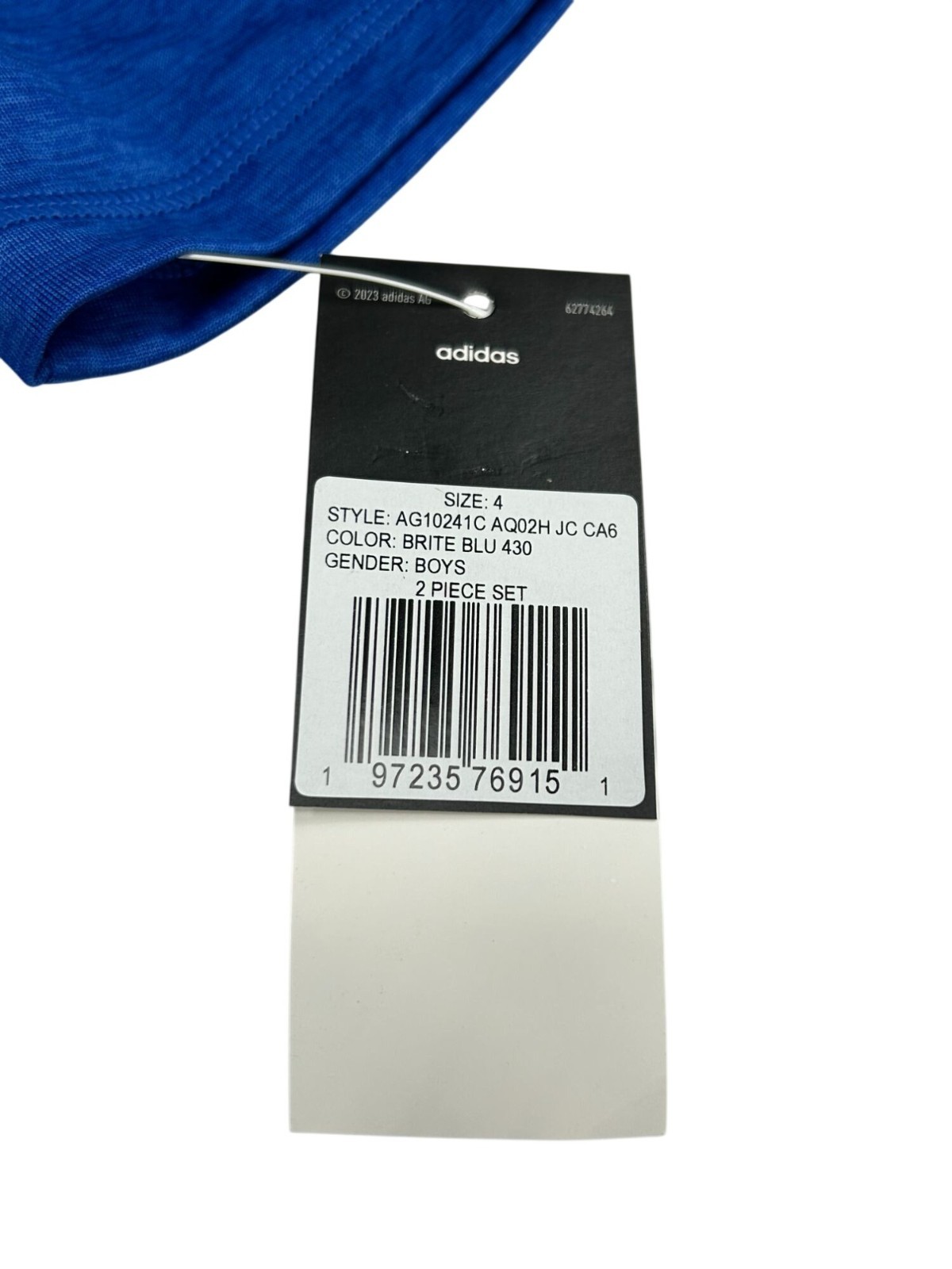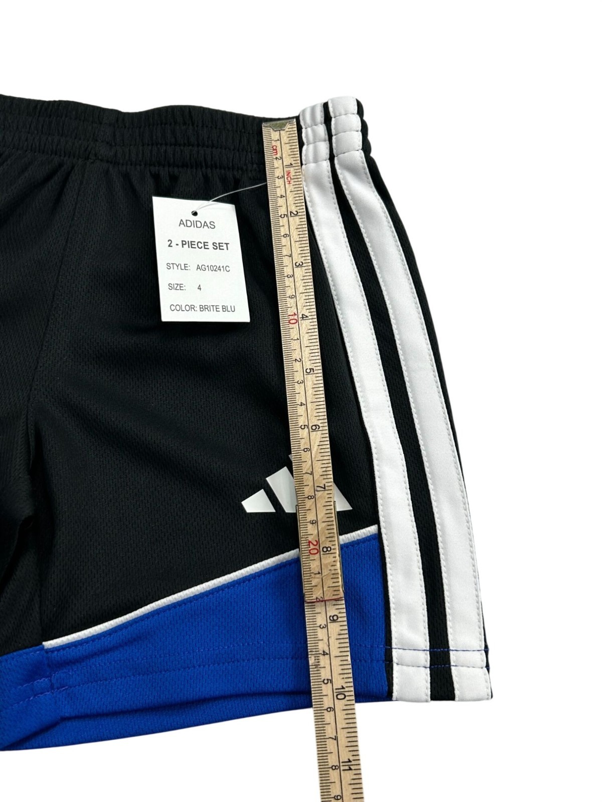 Adidas Boys 2-Piece Set Size 4 Brite Blu Shirt Black/Blue Shorts Activewear