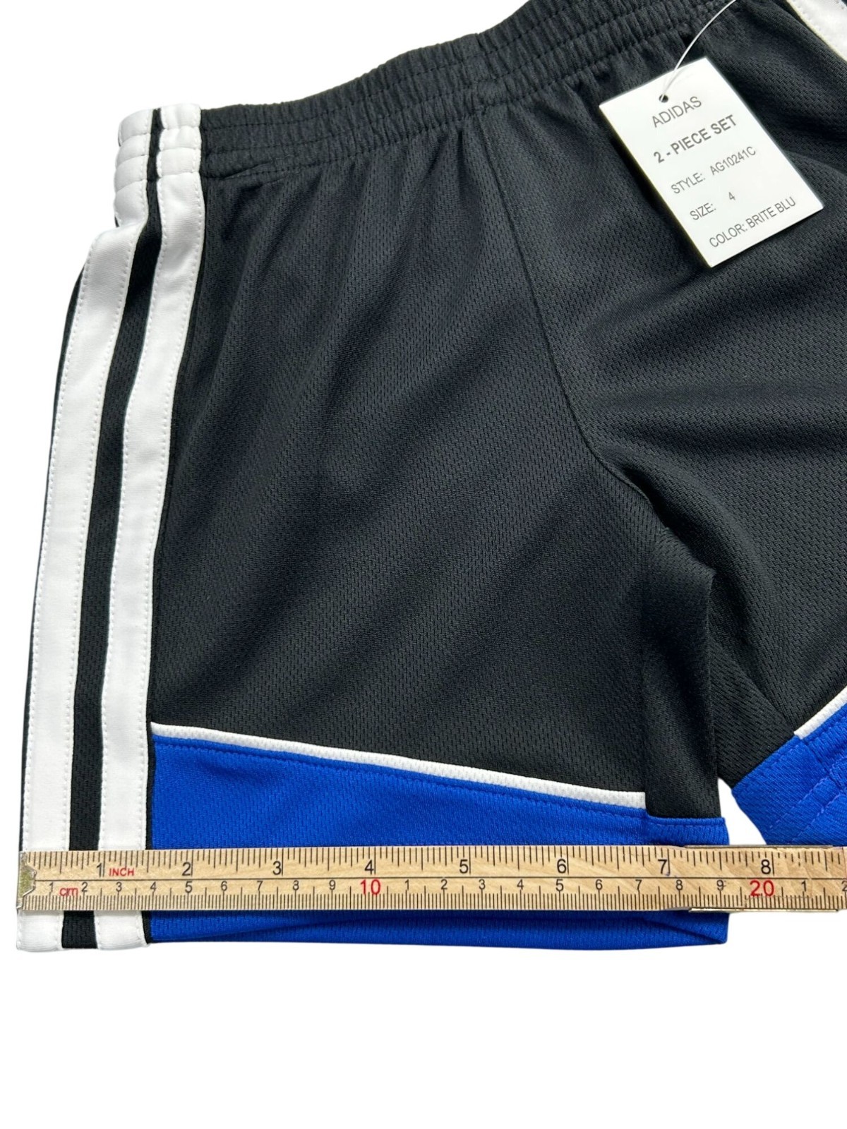как выглядит Adidas Boys 2-Piece Set Size 4 Brite Blu Shirt Black/Blue Shorts Activewear фото