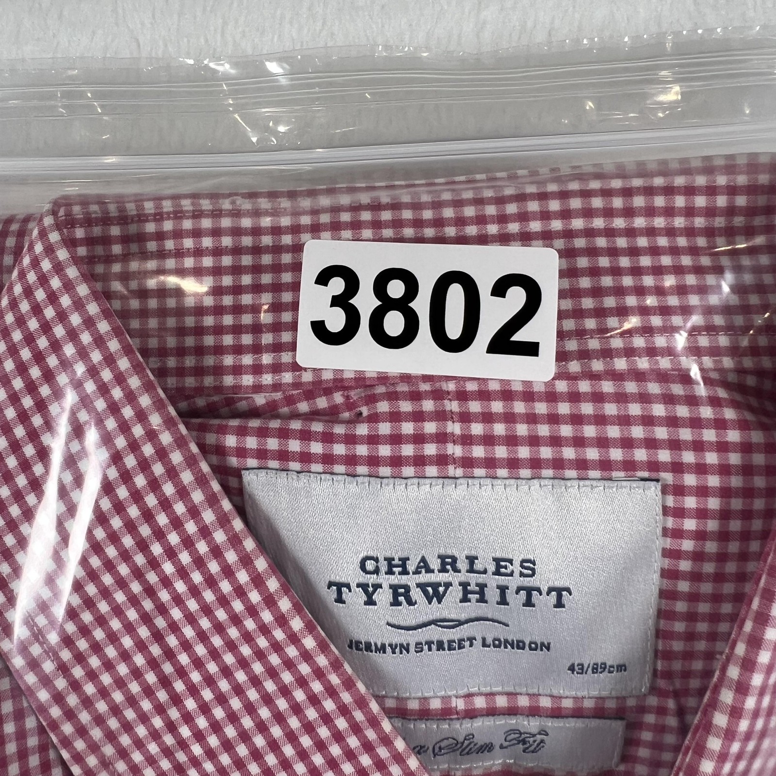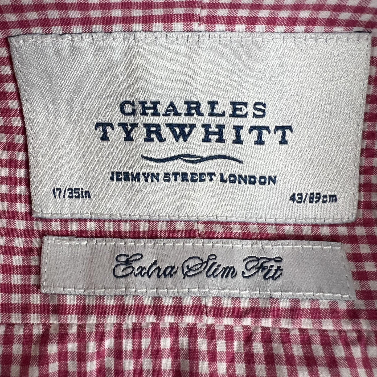 Charles Tyrwhitt Shirt Mens 17 34/35 Red Gingham Extra Slim Fit Dress Shirt