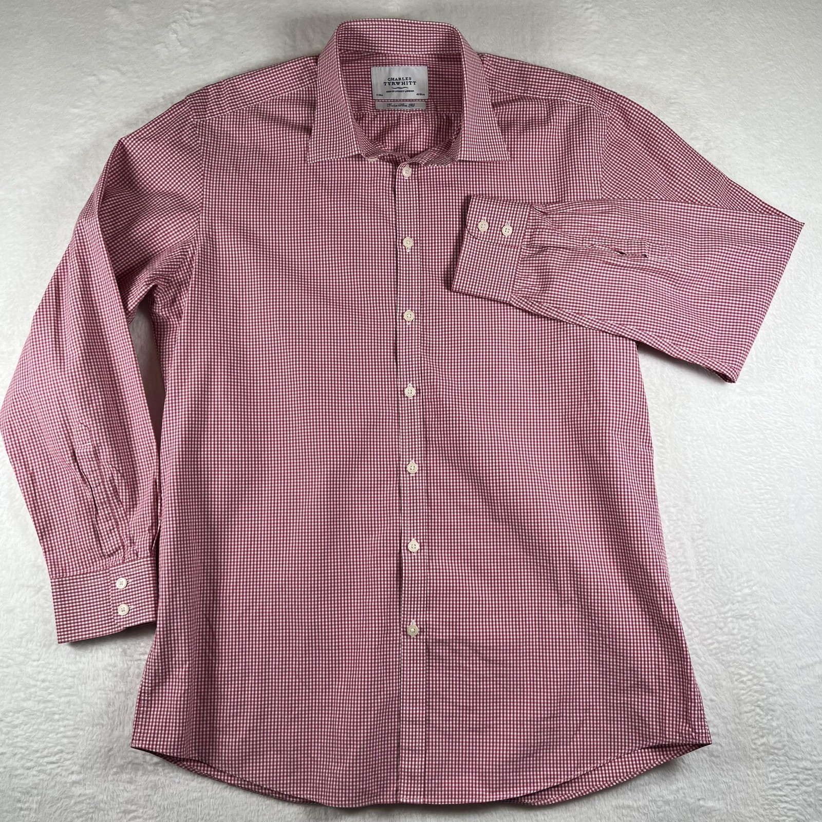 как выглядит Charles Tyrwhitt Shirt Mens 17 34/35 Red Gingham Extra Slim Fit Dress Shirt фото
