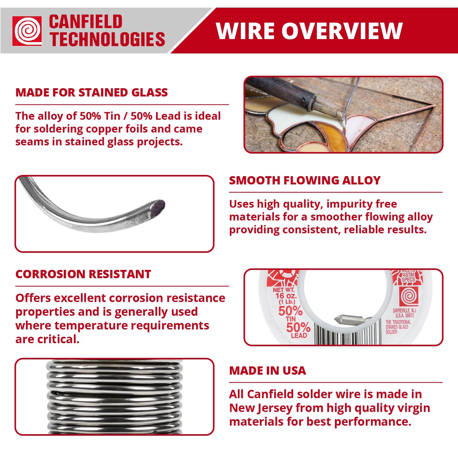 Canfield 50/50 Solder for Stained Glass 1 Lb Spool Lead-Tin Alloy