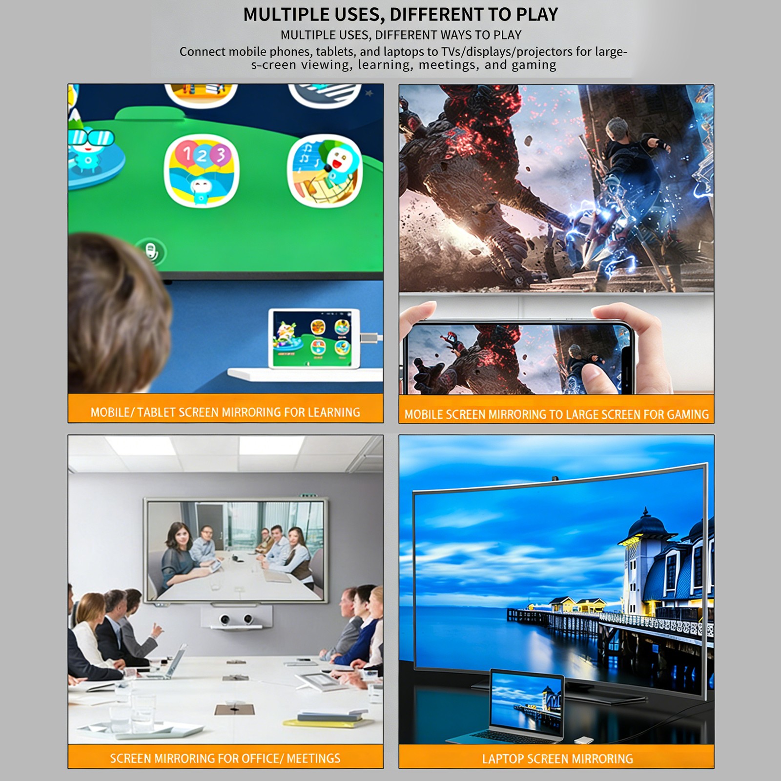 Connector A: HDMI Standard Female, USB, USB-C