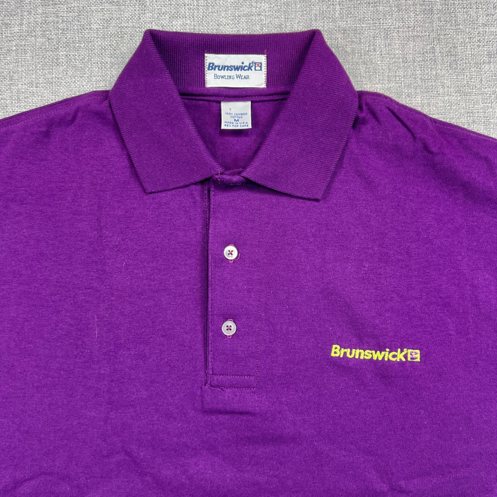 Vintage 90s Brunswick Bowling Polo Shirt Mens Medium Purple Cotton USA Deadstock