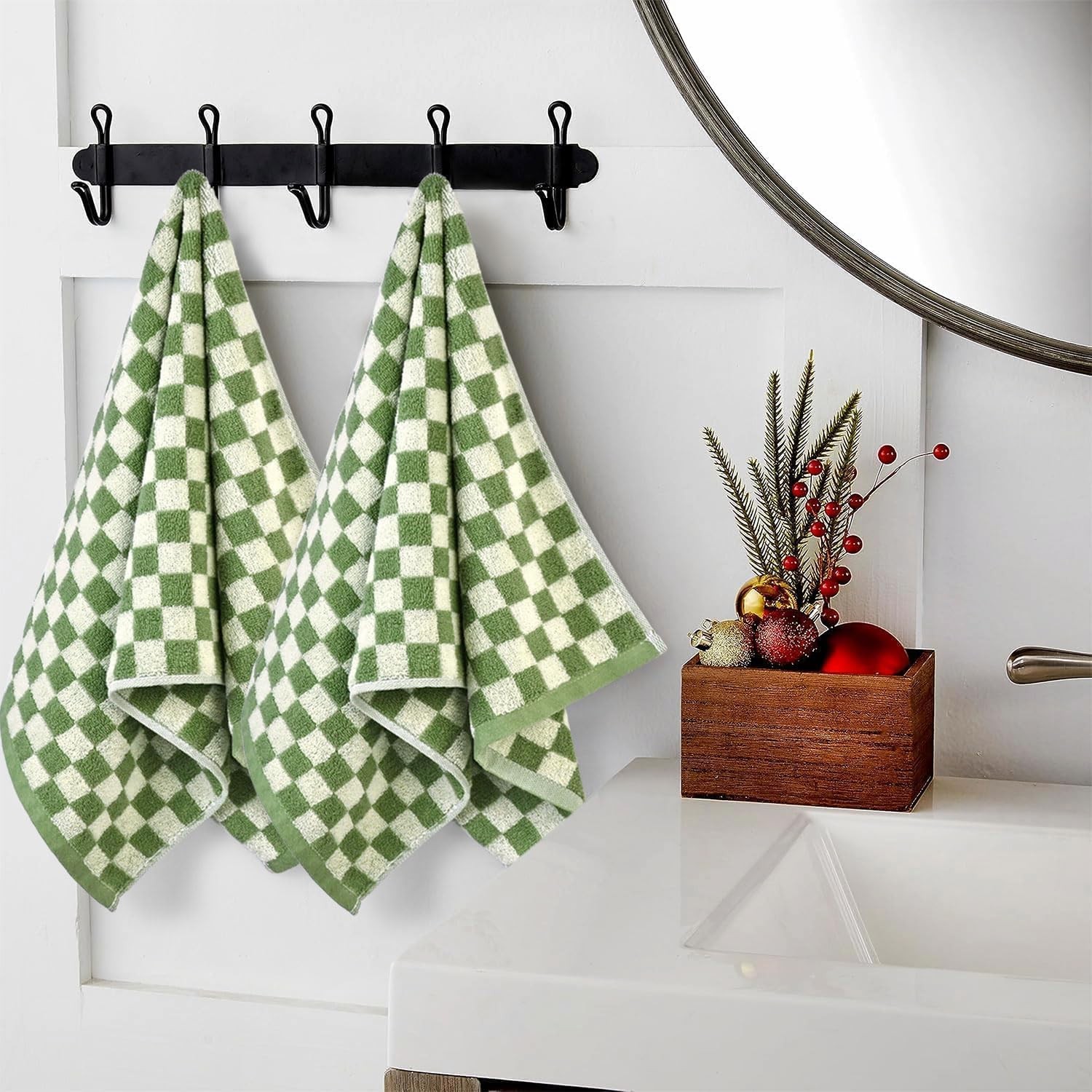 Green Hand Towels for Bathroom Set of 4 - Cute Checkered Bathroom Towels for ...