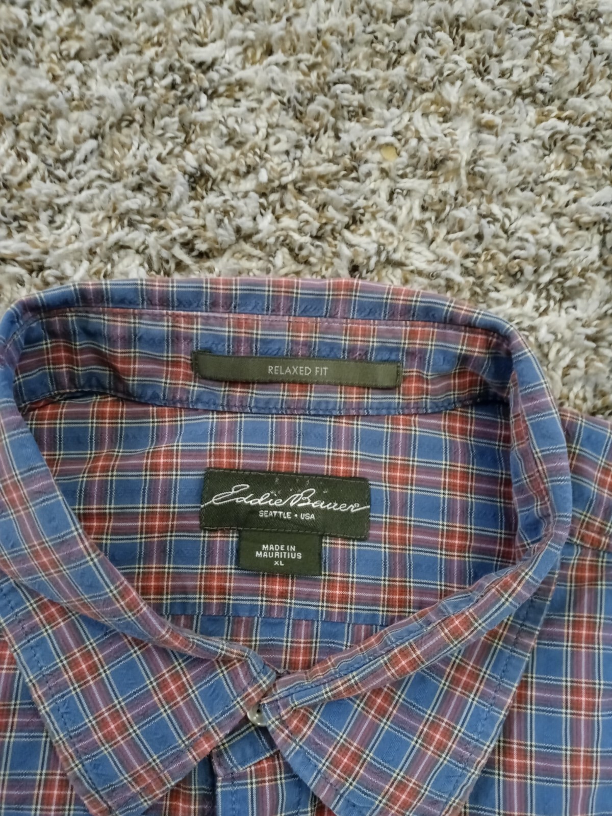 Eddie Bauer Mens Shirt Size XL Blue Red Plaid Long Sleeve Button Front Cotton