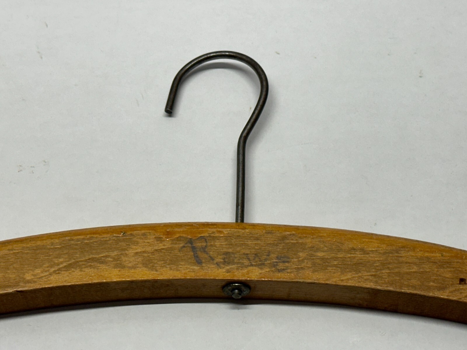 как выглядит 5x Vintage Wooden Clothes Hangers Advertising Maine Woodfields Lewiston Augusta фото