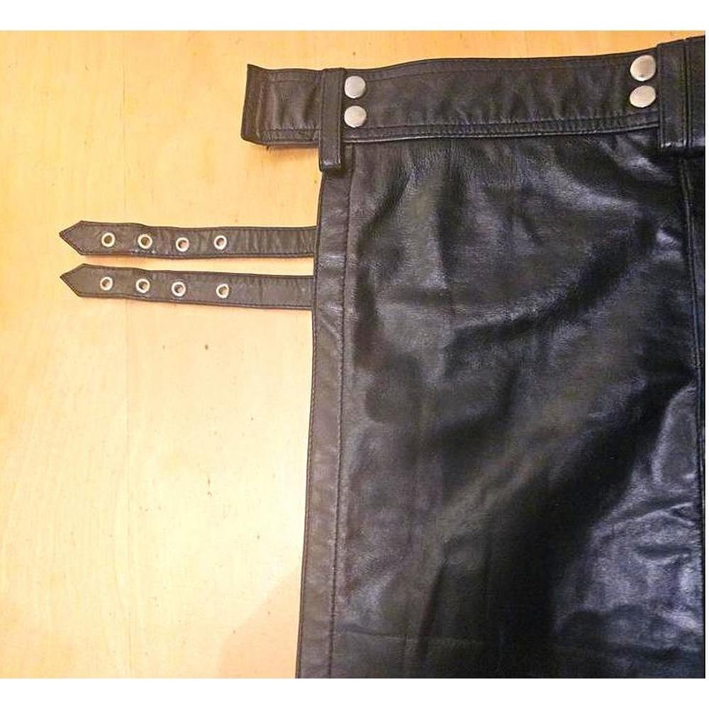 как выглядит Premium Pleated Black Faux Leather Utility Kilt Fits 34" Waist 23.5" Length фото